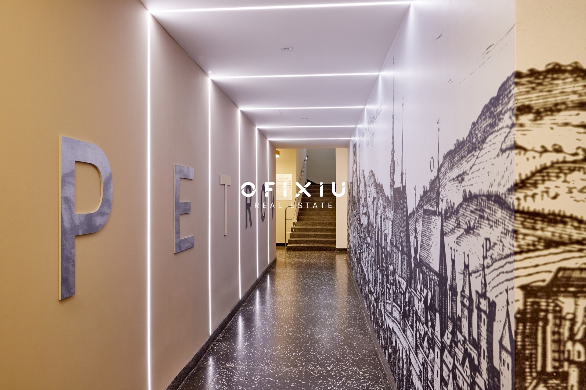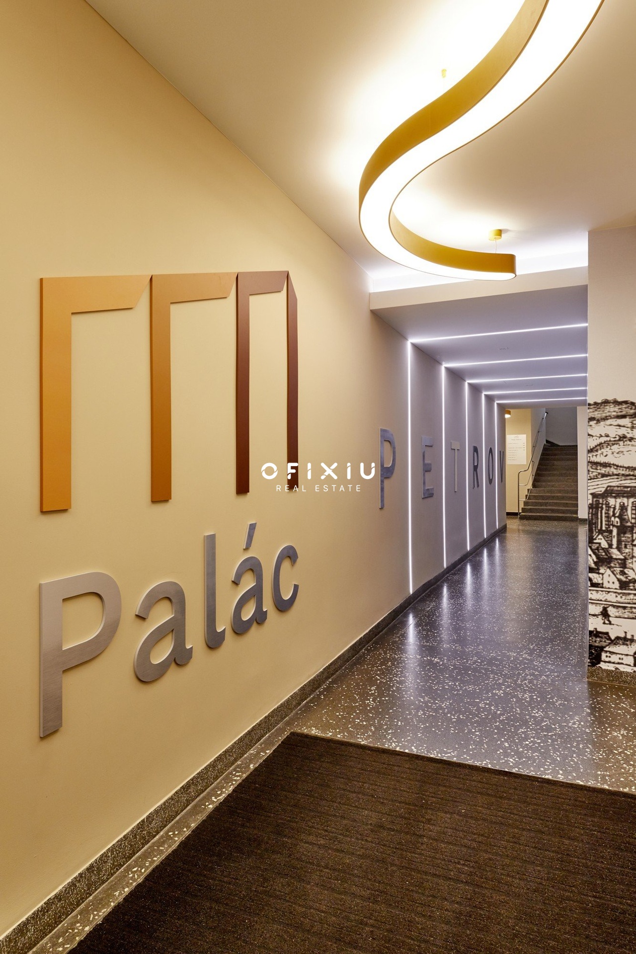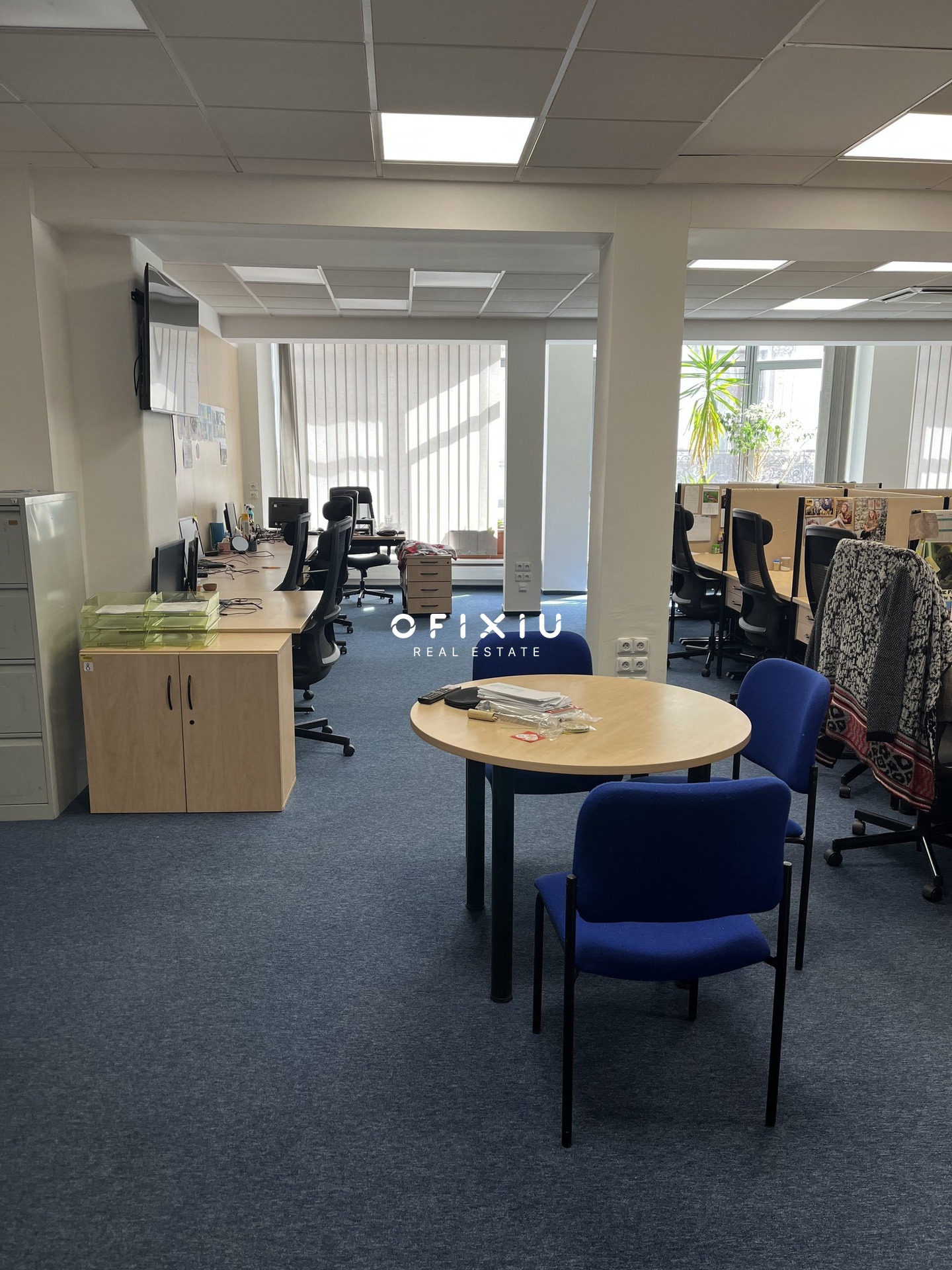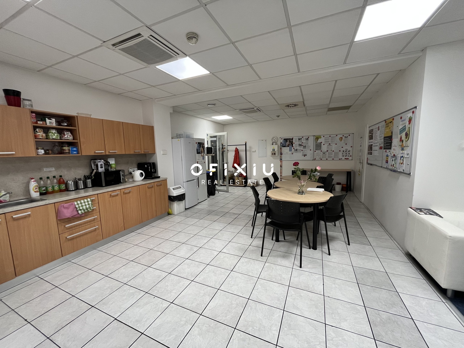 Interiér je světlý, moderní a klimatizovaný, s dostatkem denního světla díky proskleným příčkám.