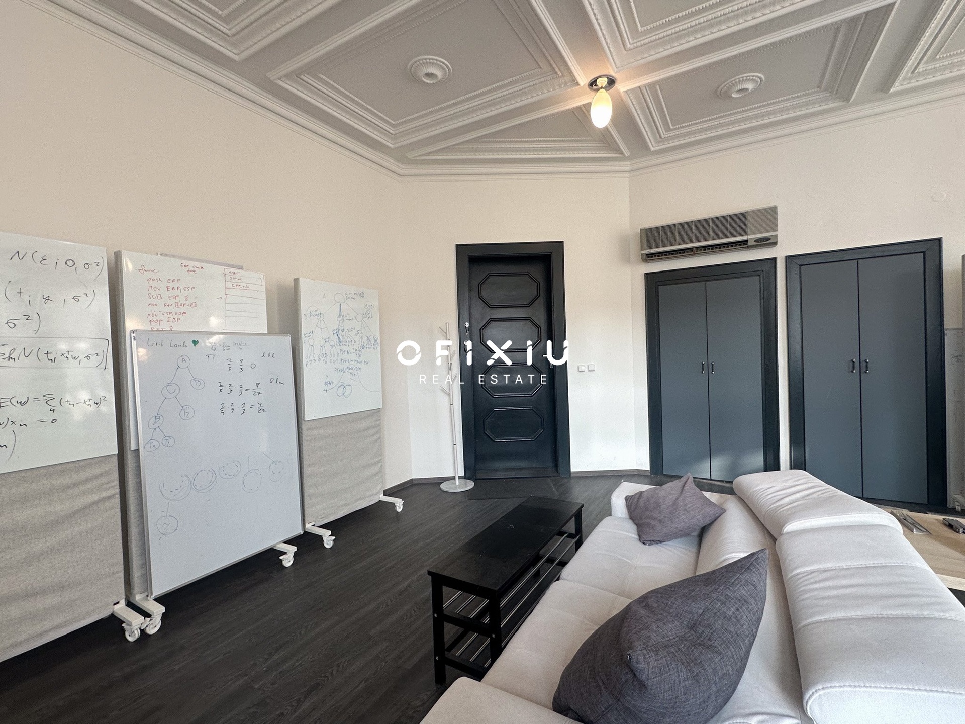 Kancelář tvoří jedna velká, světlá místnost s vysokými stropy a velkými okny, která zajišťují dostatek denního světla. Součástí prostoru je menší balkón s výhledem do ulice a umyvadlo s přívodem vody, které může sloužit pro zázemí nebo malý kuchyňský kout. Prostor je klimatizovaný.