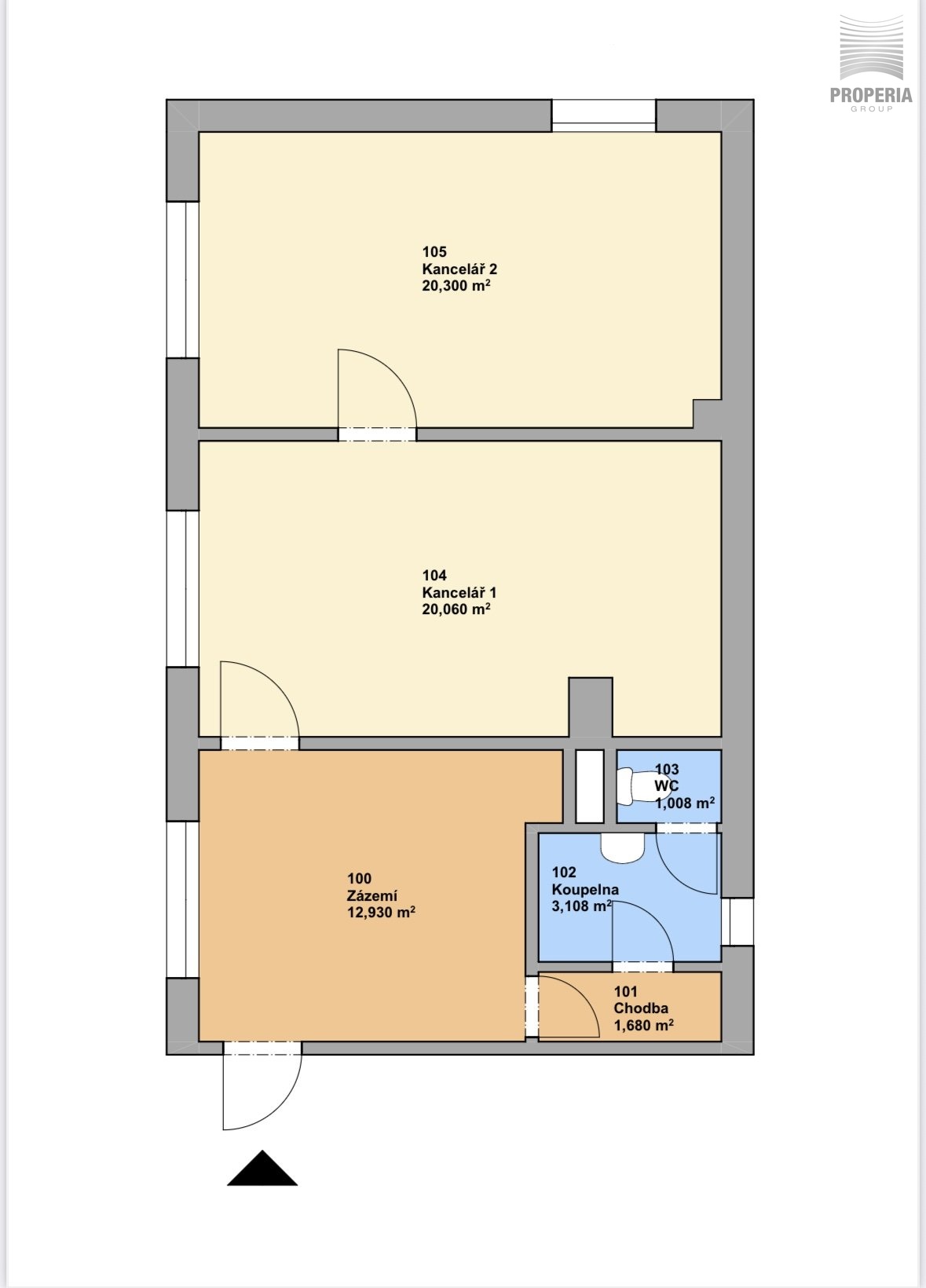 Dispozice a velikost umožňují využití například jako sídlo menší firmy, IT pracoviště, projekční kanceláře nebo administrativního zázemí pro 5–6 osob.