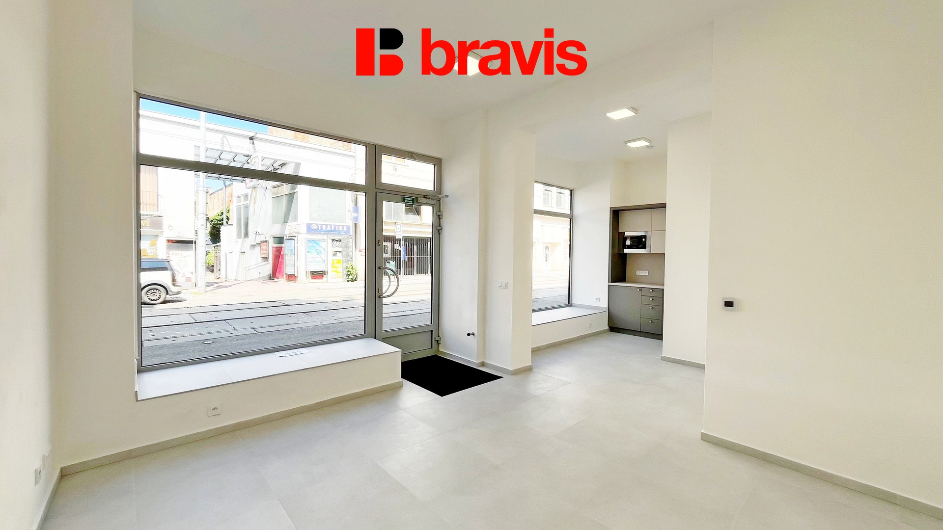 Velkou výhodou jsou dvě velké výlohy přímo do ulice. Jedná se o frekventovanou část, kde je velké množství jak projíždějících aut, tak vzhledem k nedaleké zastávce tramvaje kolemjdoucích osob.