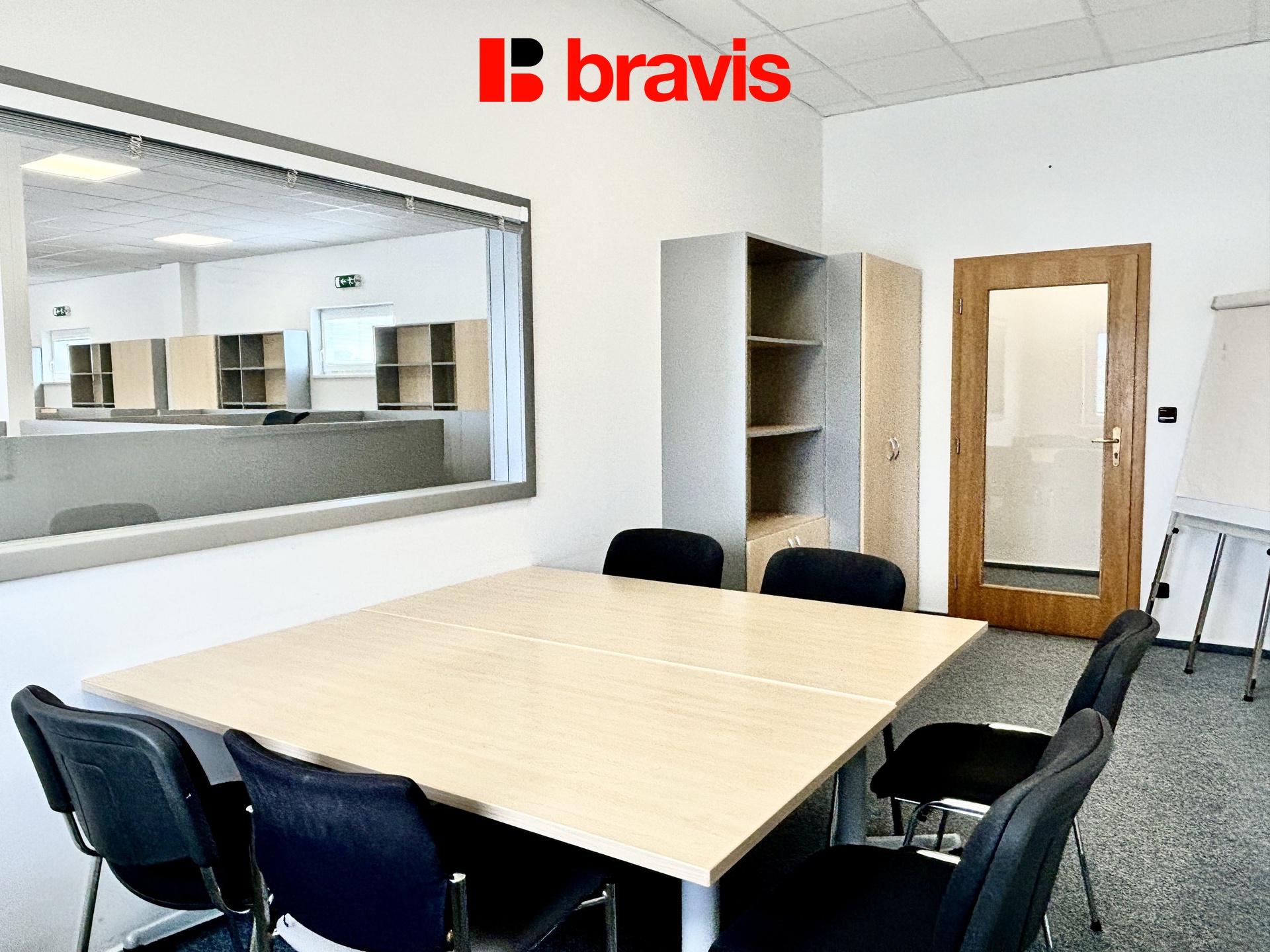 - Dvou oddělených místností o velikostech 14,4 m² a 28,9 m², které jsou od hlavního prostoru odděleny dveřmi a okny – tyto místnosti se skvěle hodí jako zasedací místnosti, kanceláře vedení nebo tichá pracovní zóna