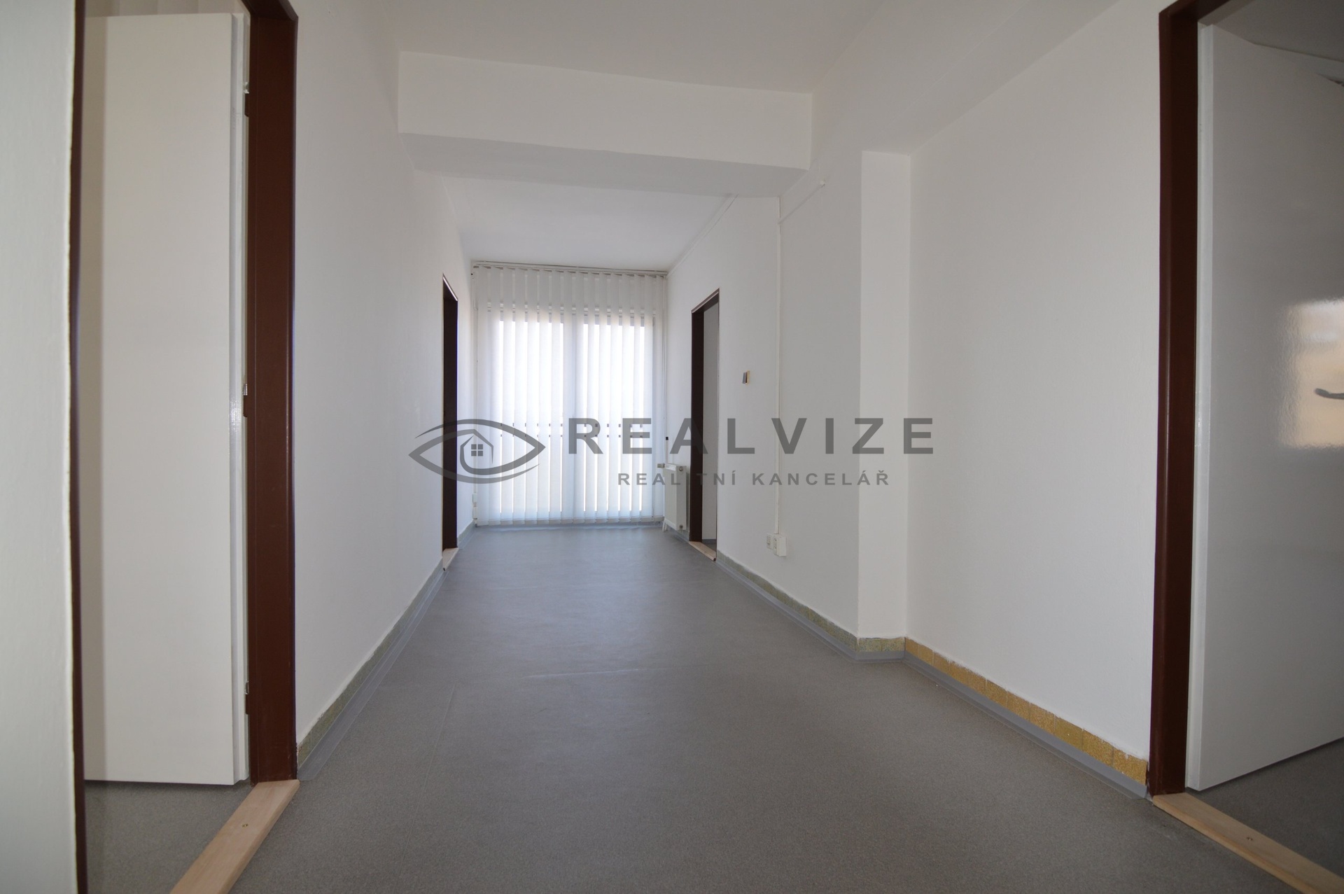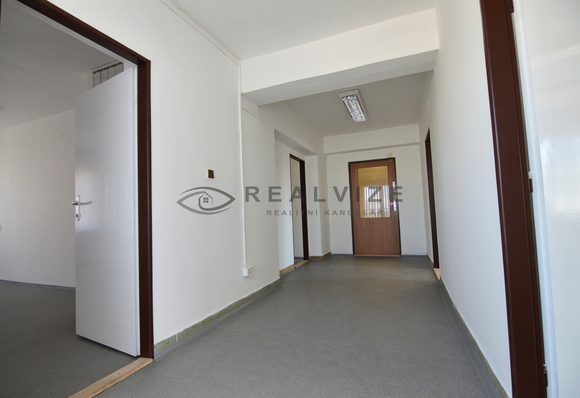 Jedná se o dvě průchozí kanceláře (18,2 a 17,4 m2) a tři samostatné (18,8, 17,8 a 16,5 m2) a náleží k nim samostatná uzamykatelná vstupní chodba (12,3 m2). Všechny kanceláře mají možnost napojení vody s umístěním umyvadla.