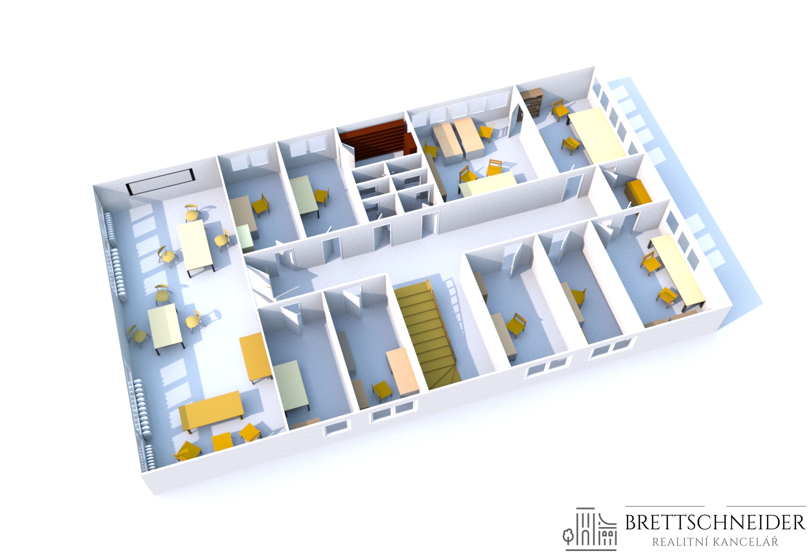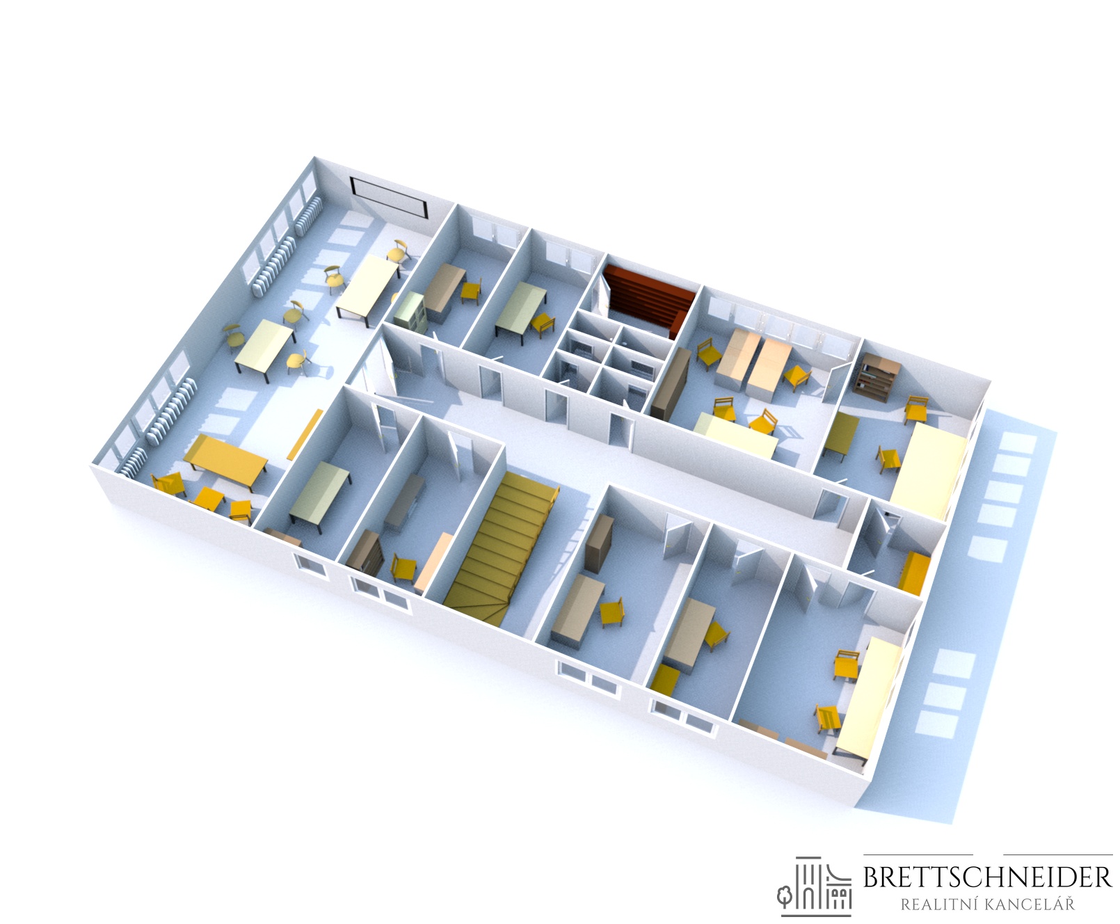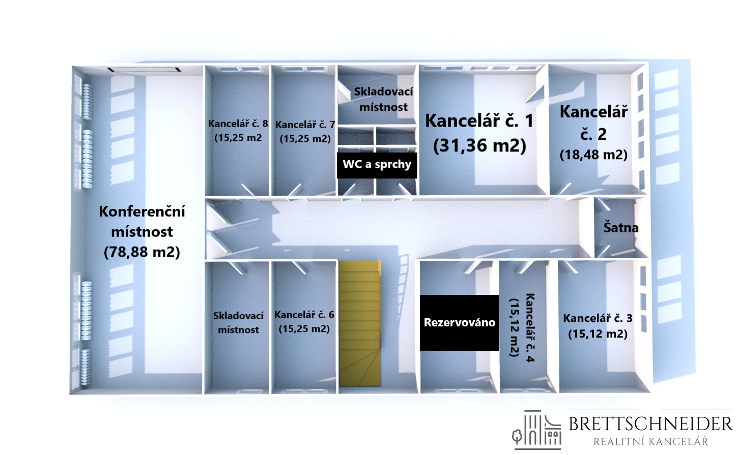 Aktuálně je volných 7 kanceláří + konferenční místnost 78,88 m2.