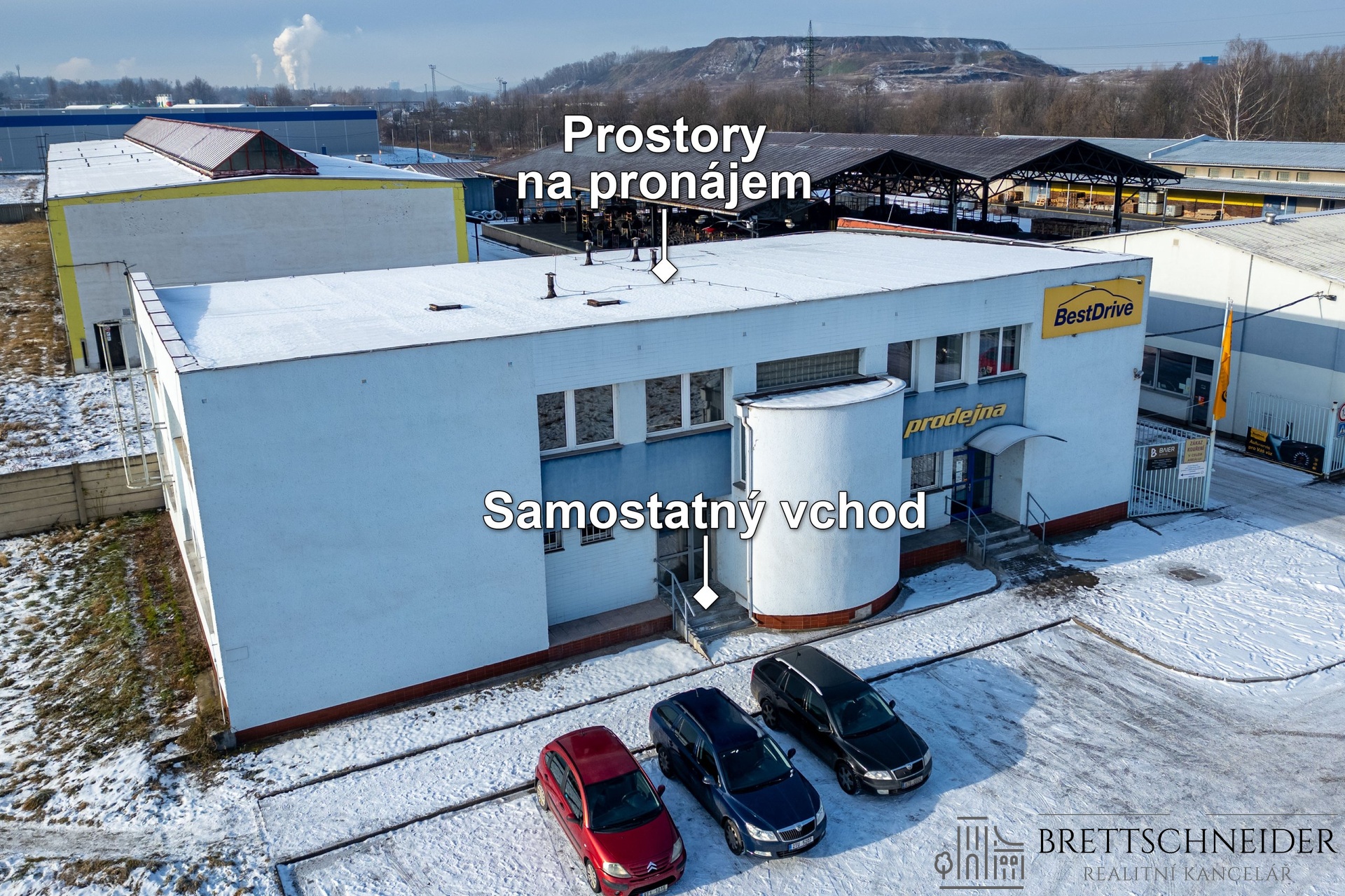 Kanceláře se nachází ve 2. nadzemním podlaží z celkových 2. NP bez výtahu. Přístup do prostor, kde jsou kanceláře je skrz samostatný vstup, v průběhu ledna 2026 bude dokončeno kódovací zabezpečovací zařízení.