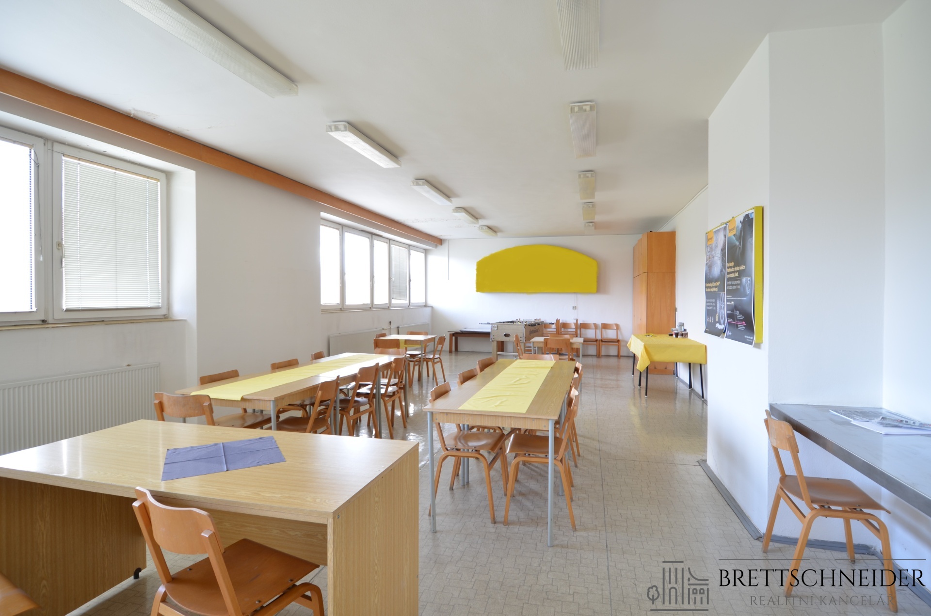Součástí prostor pak je 2x WC se sprchovacími kouty, velká místnost, dříve užívána jako jídelna (78,88 m2), nyní možno použít jako konferenční místnost, pak dále jsou zahrnuty v pronájmu 2x skladovací místnosti (10 a 12 m2) a 1x šatna (2,7 m2).