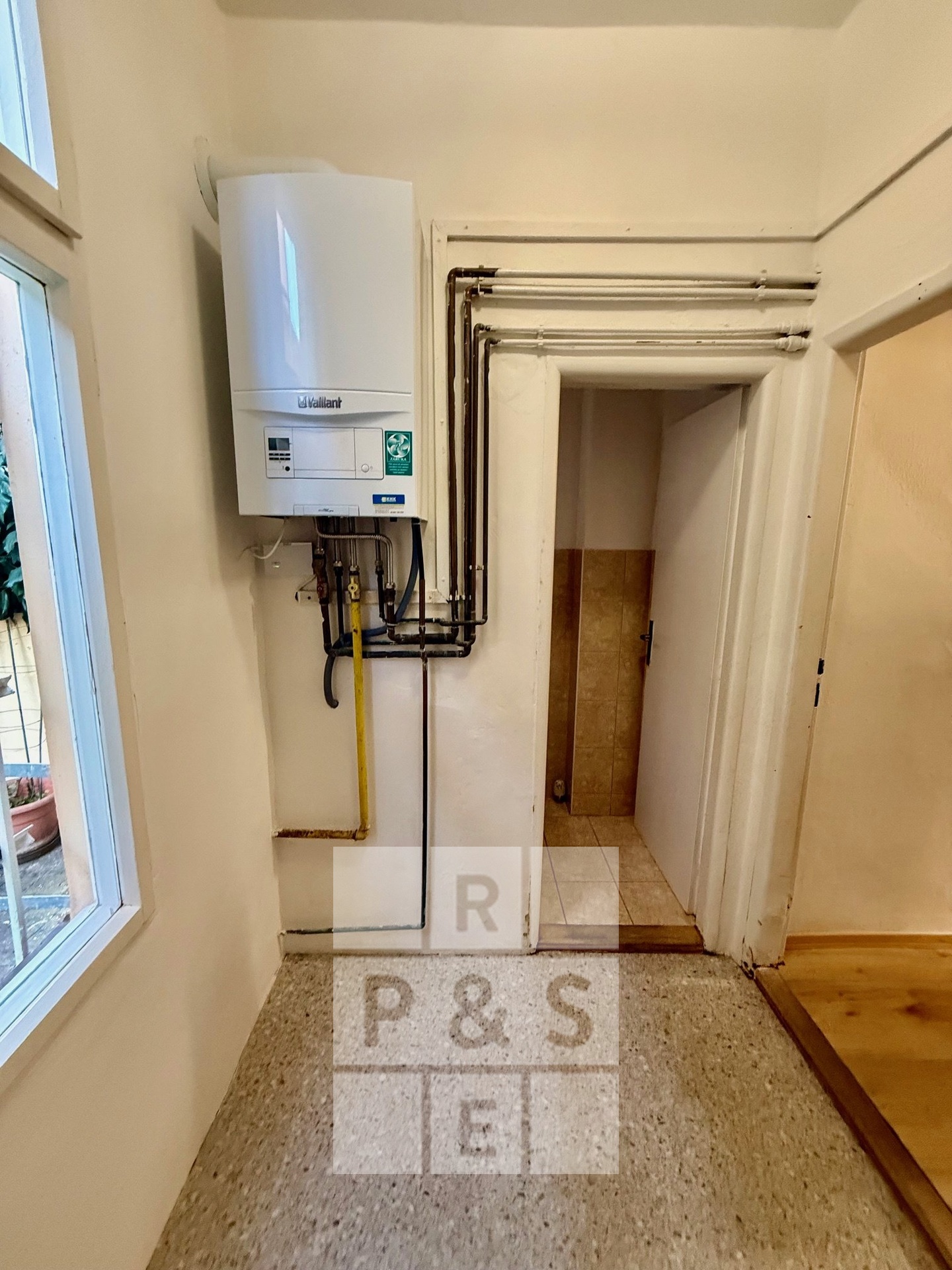 Dispozice zahrnuje tři samostatné místnosti a vstupní prostor s kuchyňskou linkou. K dispozici je dále sprcha a samostatná toaleta, což zvyšuje komfort pro každodenní provoz.