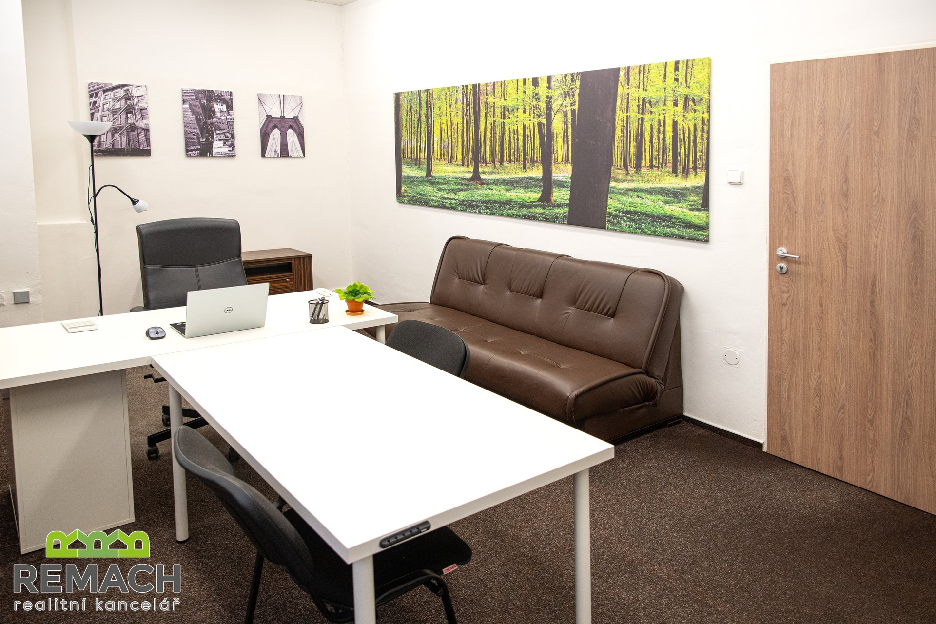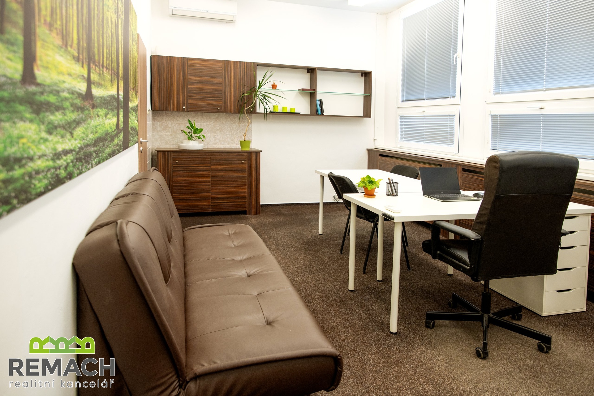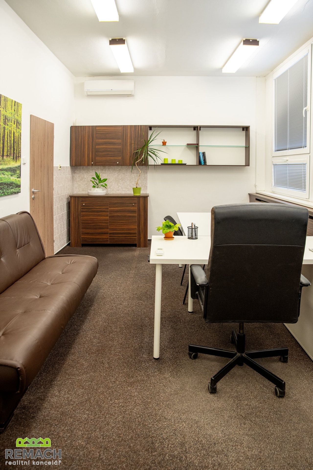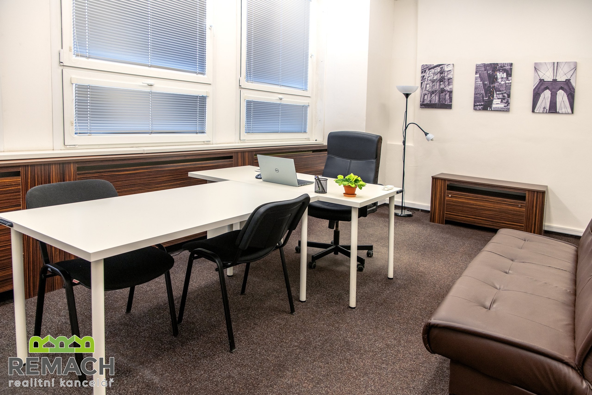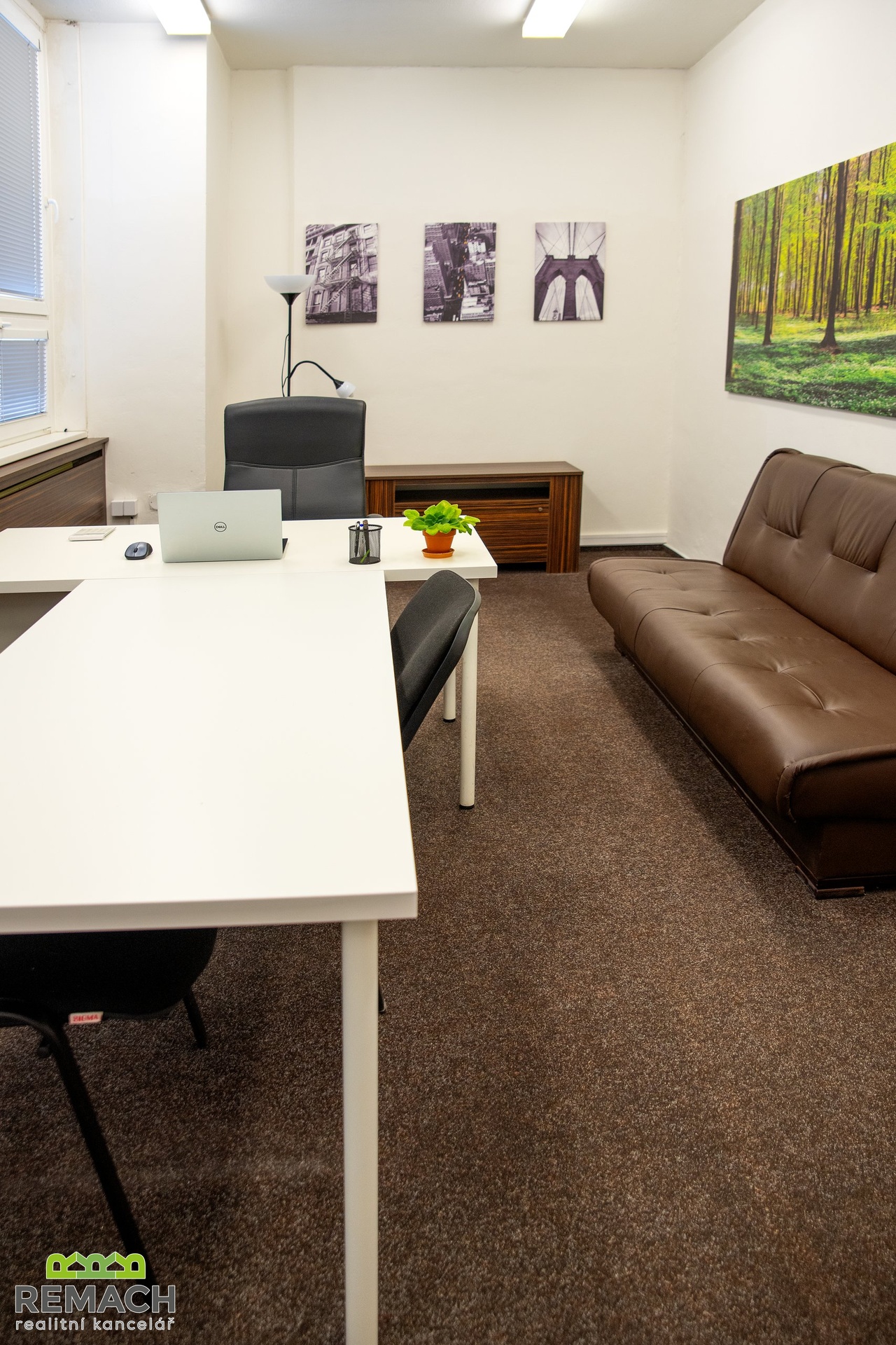 Tato zařízená kancelář s výhledem na město, se nachází na atraktivním místě, jen pár kroků přímo do