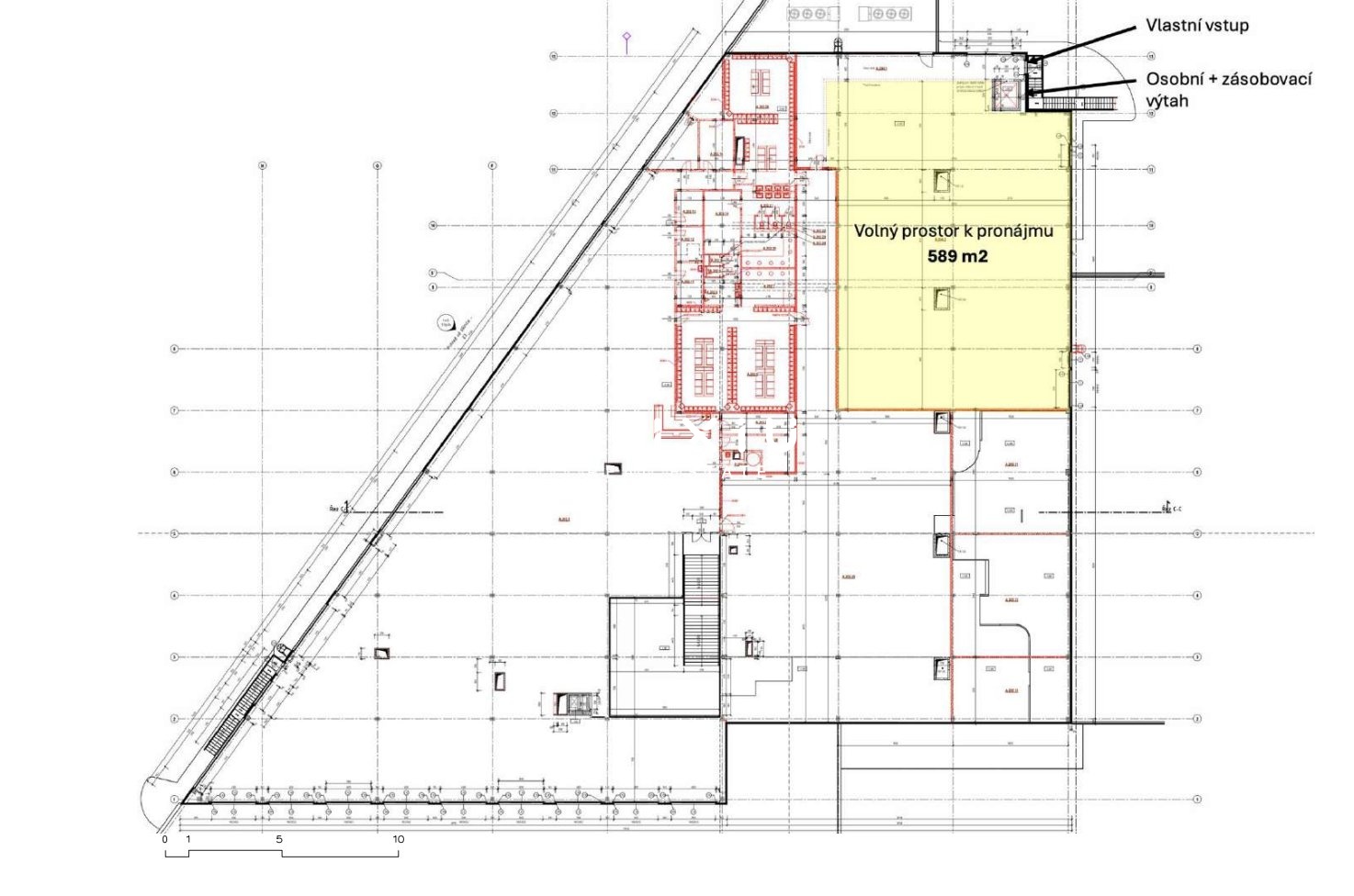 Pronájem obchodního prostoru o výměře 589m2, který se nachází ve 2.NP a má samostatný vstup přes venkovní schodiště a je také zajištěn bezbariérový vstup výtahem (osobní/zásobovací).