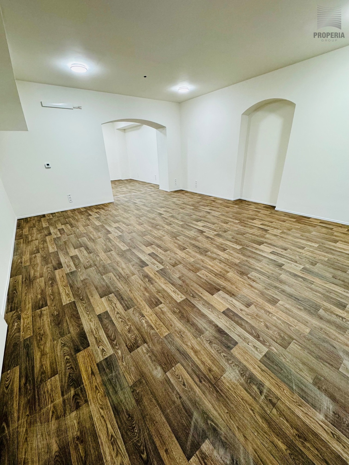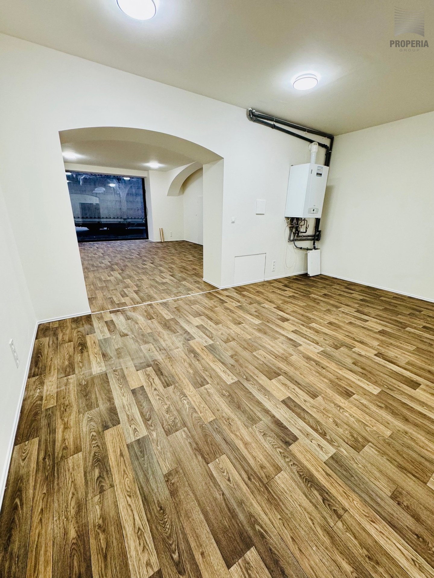 Prostor tvoří dvě velkorysé průchozí místnosti, které lze využít jako hlavní provozní plochu, klientskou zónu, showroom či kombinaci více funkcí.