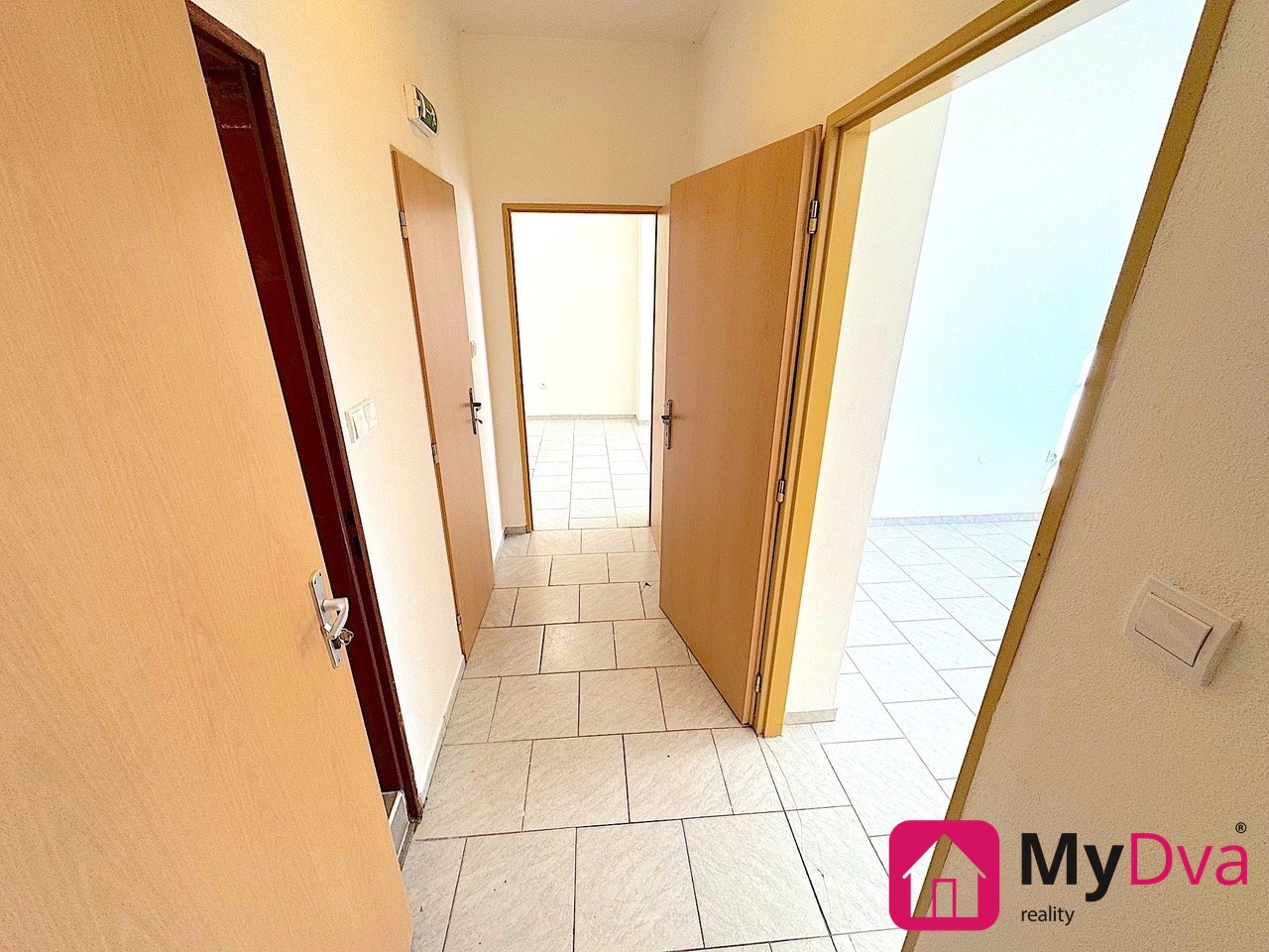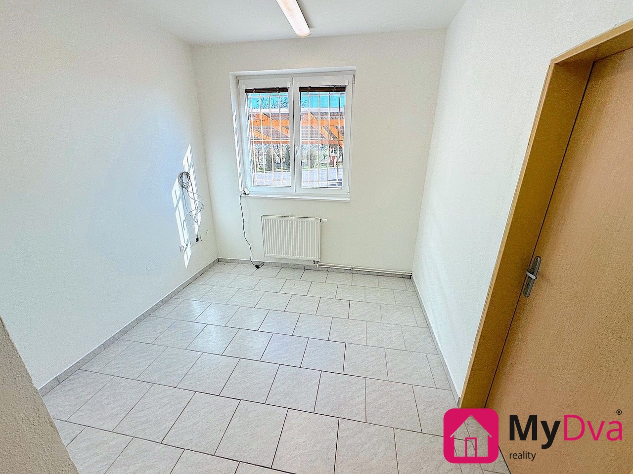 Prostory se nachází v administrativní budově v 1.nadzemním podlaží. Prostor se skládá z chodby, dvou samostatných místností, kuchyňky, sprchového koutu a toalety. Vhodné pro víceúčelové administrativní činnosti. Parkování je umožněno před objektem pro více vozidel, na obloceném pozemku, hlídaném kamerami se záznamem. Možnost umístění reklamních poutačů. Uvedené výměry jsou orientační.
