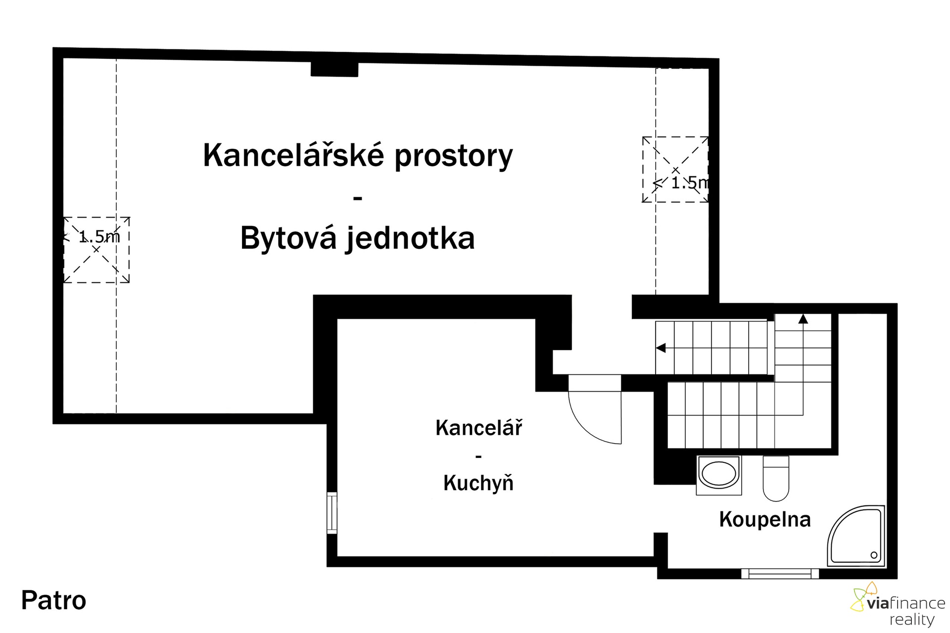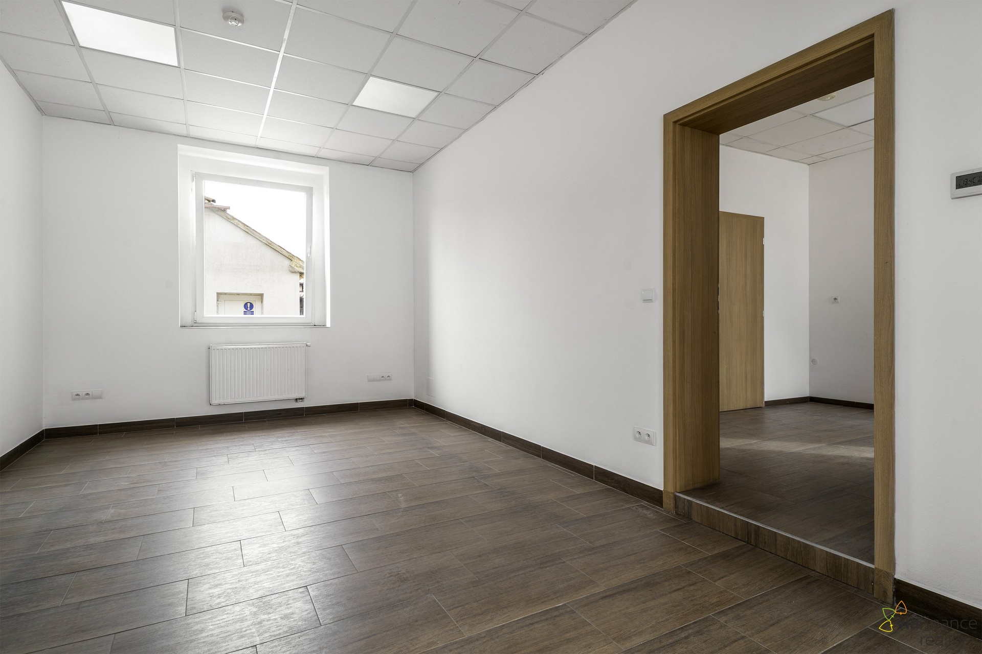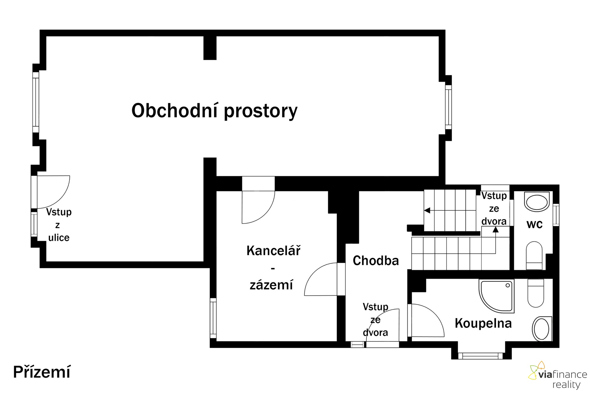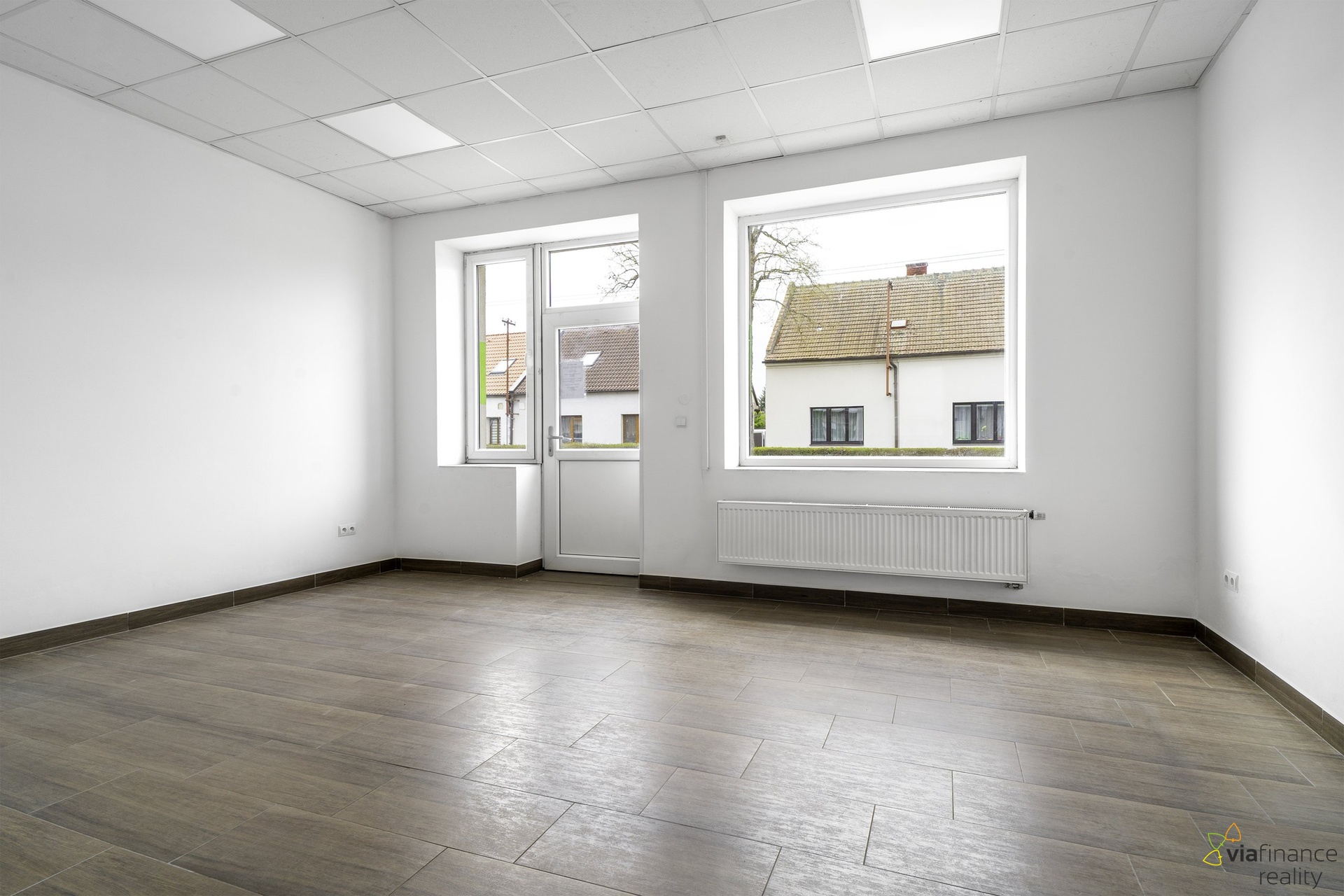 V 1. NP je obchodní prostor s velkými okny do ulice, s kanceláří a se sociálním zázemím-koupelnou se sprchovým koutem a toaletou, v 2. NP jsou dvě místnosti a koupelna s toaletou. Místnosti lze využívat jako další zázemí pro podnikání nebo jako byt. Vzhledem k tomu, že dům má tři vchody, místnosti v 2. NP lze podnajmout třetí osobě.