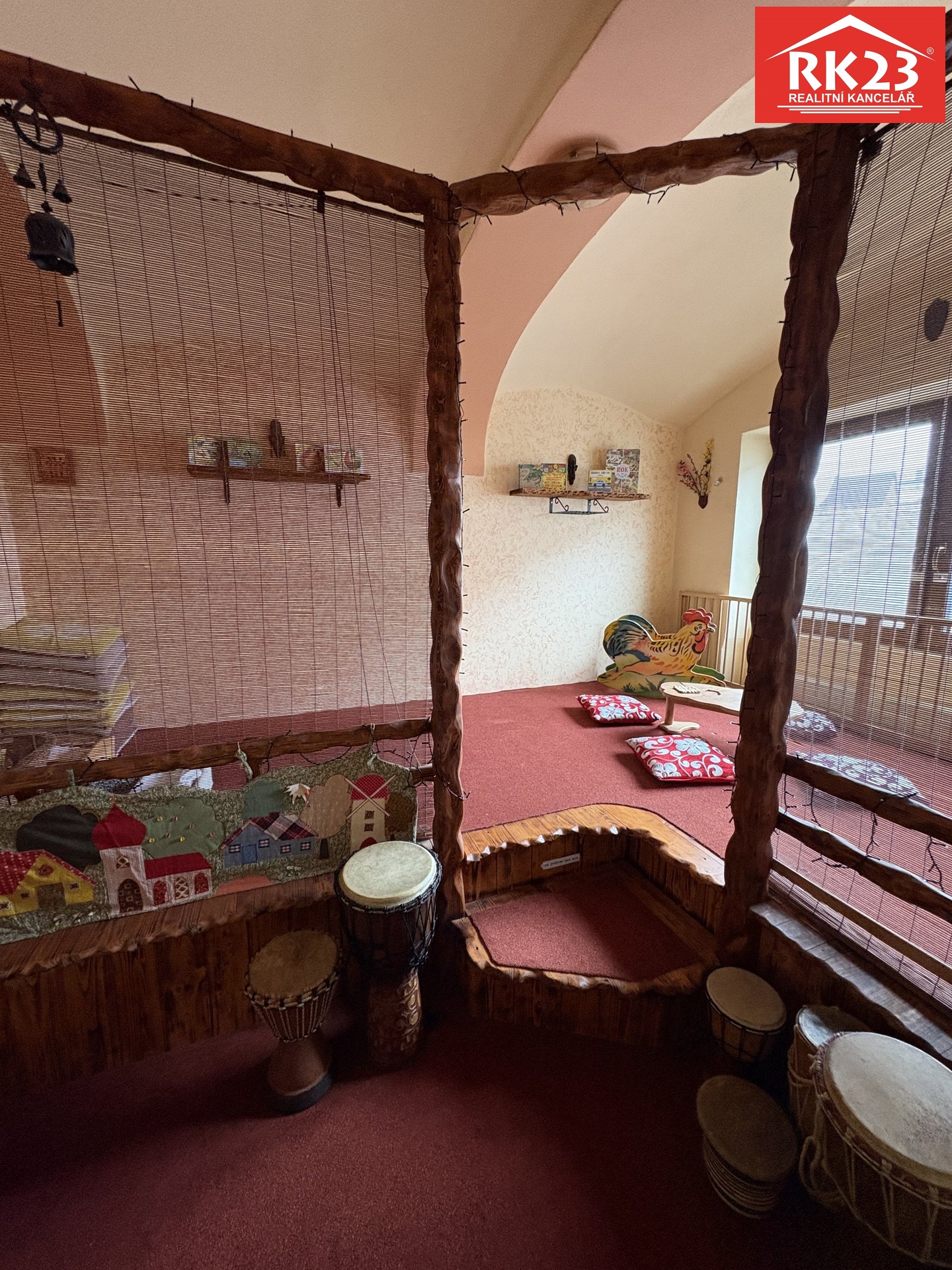 herny pro děti, kterou lze využít jako kavárnu, kreativní obchod, prostor pro jógu, cvičení s dětmi nebo jiné aktivity.