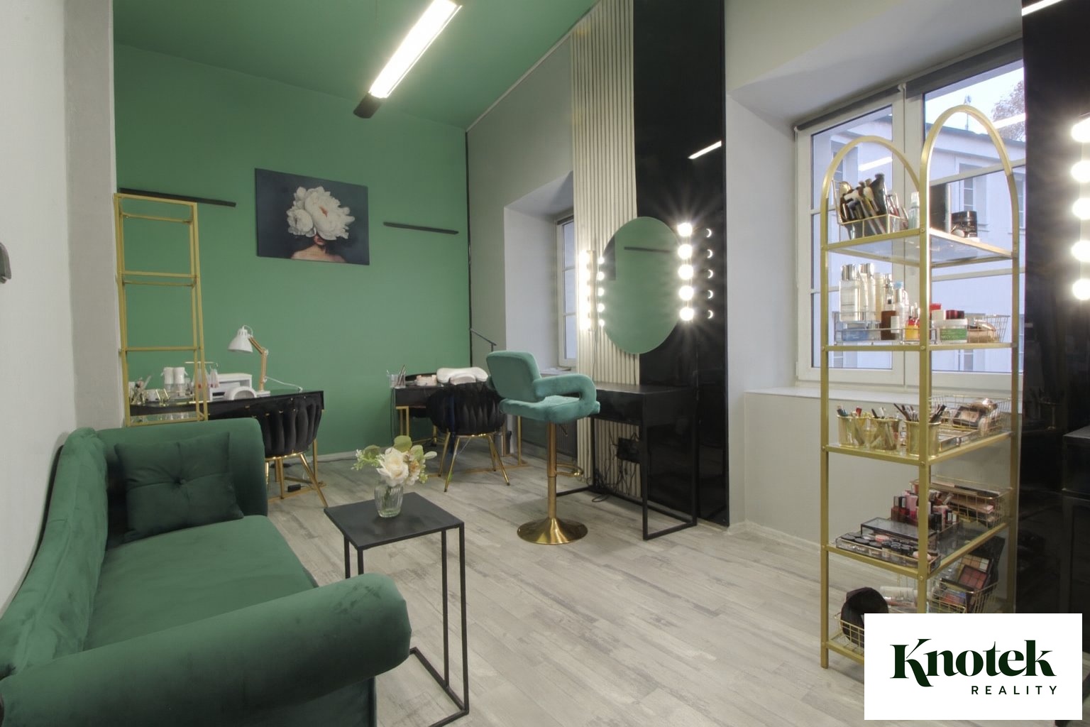 atmosféra moderního beauty studia s výraznými designovými prvky