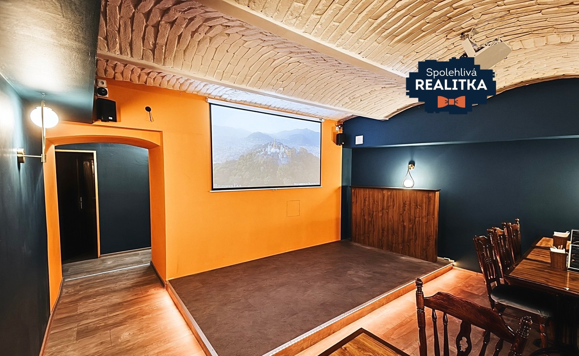V ceně podnájmu je stacionární bar a technické zázemí. Kompletní vybavení (profesionální kuchyně, nábytek, audio technika, osvětlení a projektor) lze od stávajícího provozovatele odkoupit za zvýhodněných 600 000 Kč, což umožní okamžitý start bez dalších investic. K dispozici jsou sklady, zázemí pro kuchyni a možnost umístění světelné reklamy na fasádě budovy či video prezentace u vstupu.