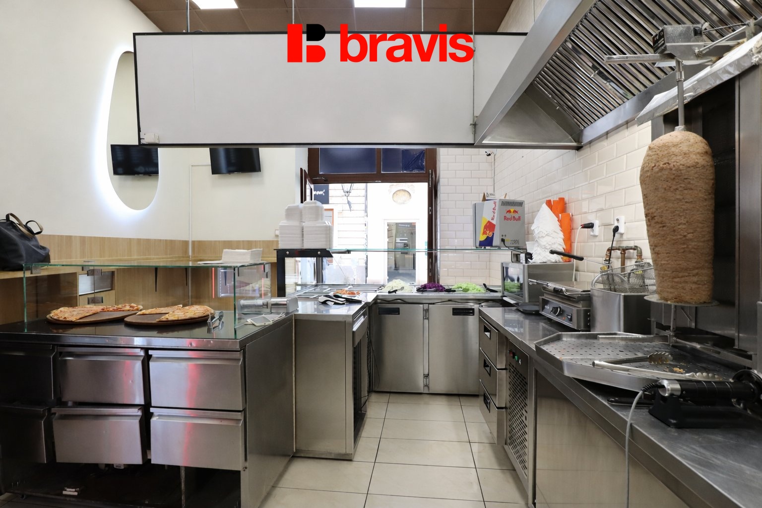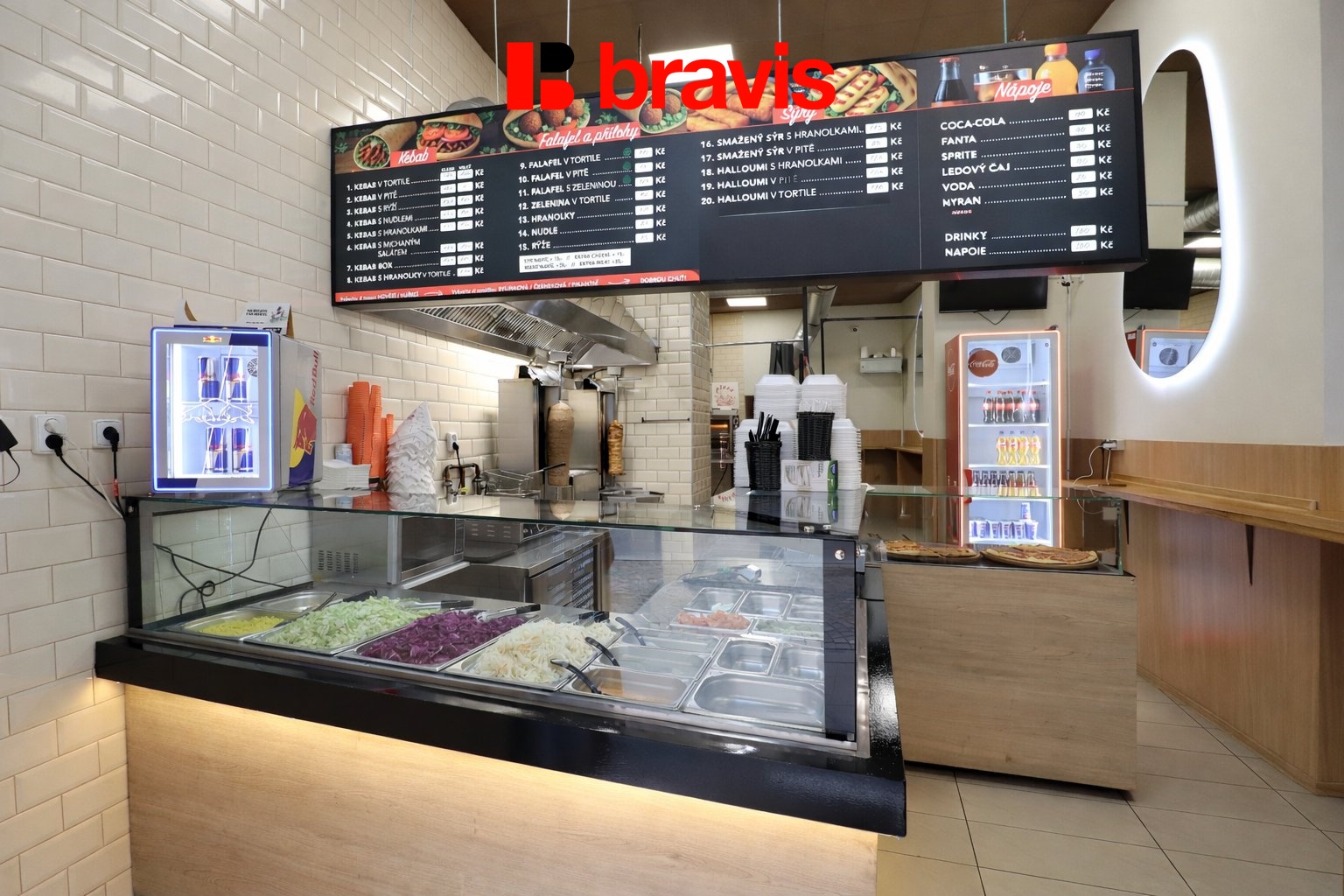 V prostoru zůstane veškeré vybavení pro provoz občerstvení. K dispozici je i zázemí včetně toalety a sprchy.
