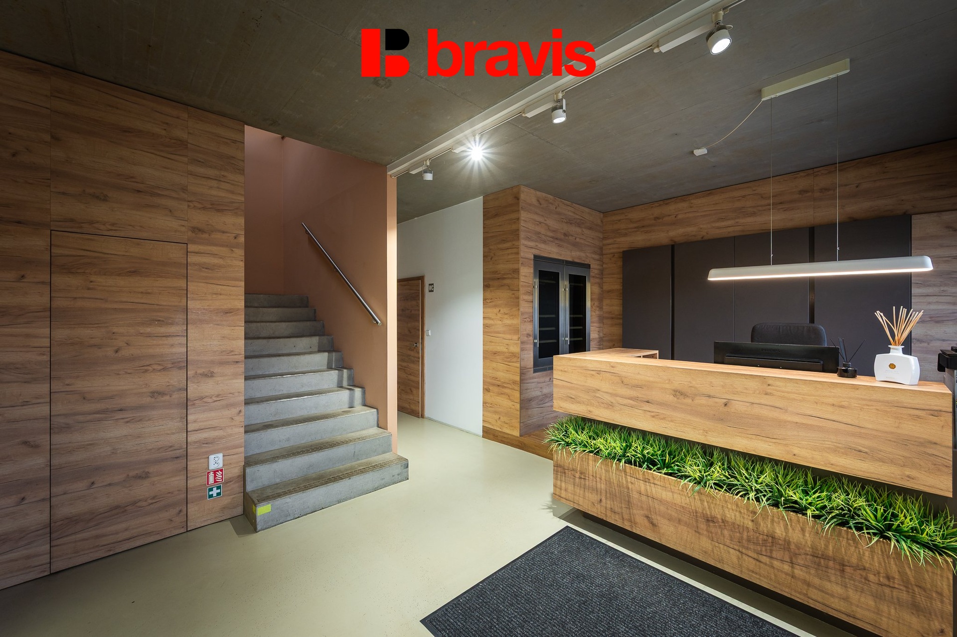 • Administrativa a vzdělávání: V patře se nachází školící místnost s projekcí a samostatná kancelář.
