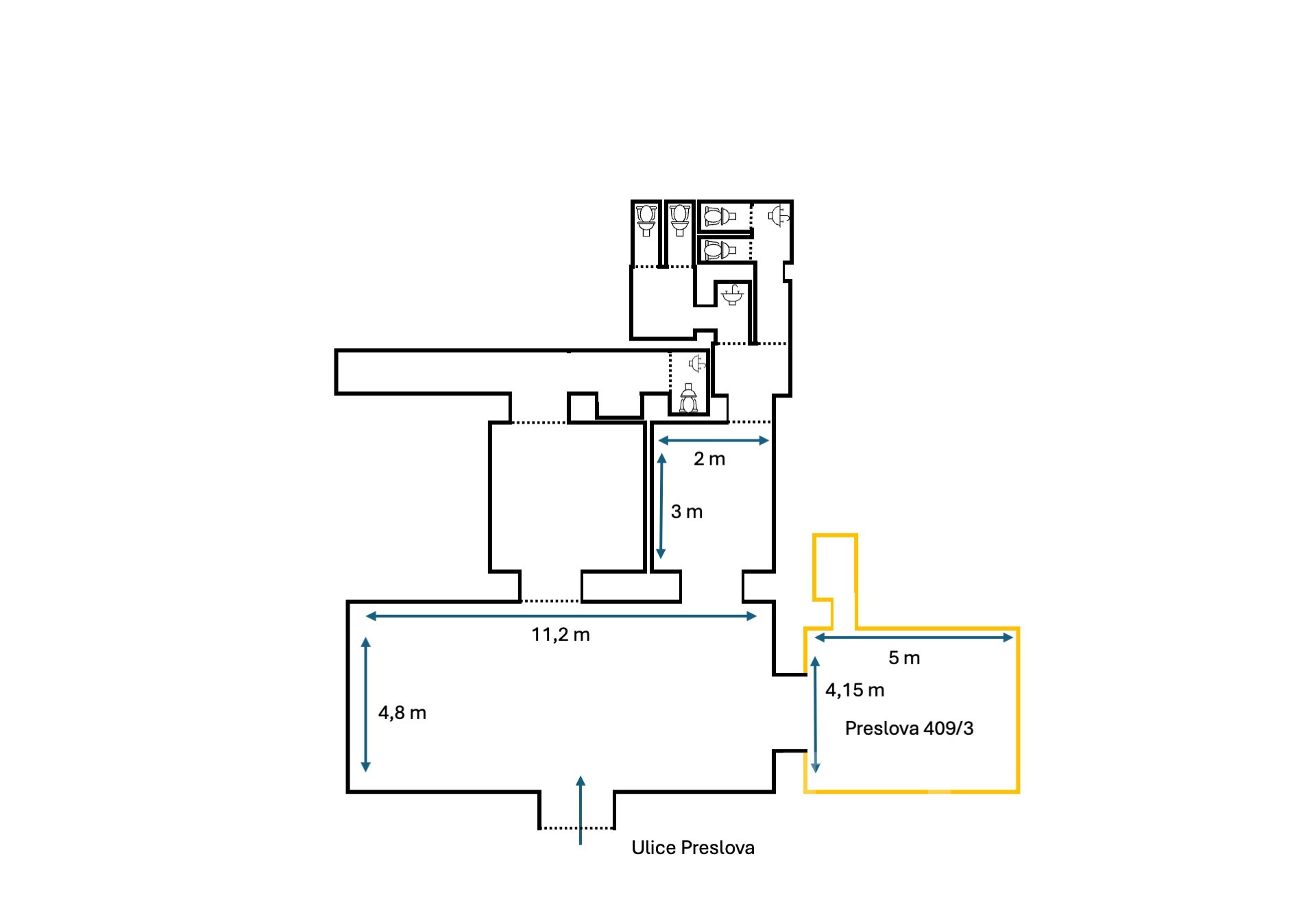 Prostor bude k dispozici od ledna 2026. Tvoří jej hlavní místnost s dostatkem prostoru pro hosty, na kterou navazuje menší místnost vhodná jako další část provozovny nebo samostatný salonek. Dále se zde nachází prostory kuchyně, toalety pro hosty, zázemí pro personál s vlastním sociálním zařízením a také samostatná skladovací místnost.