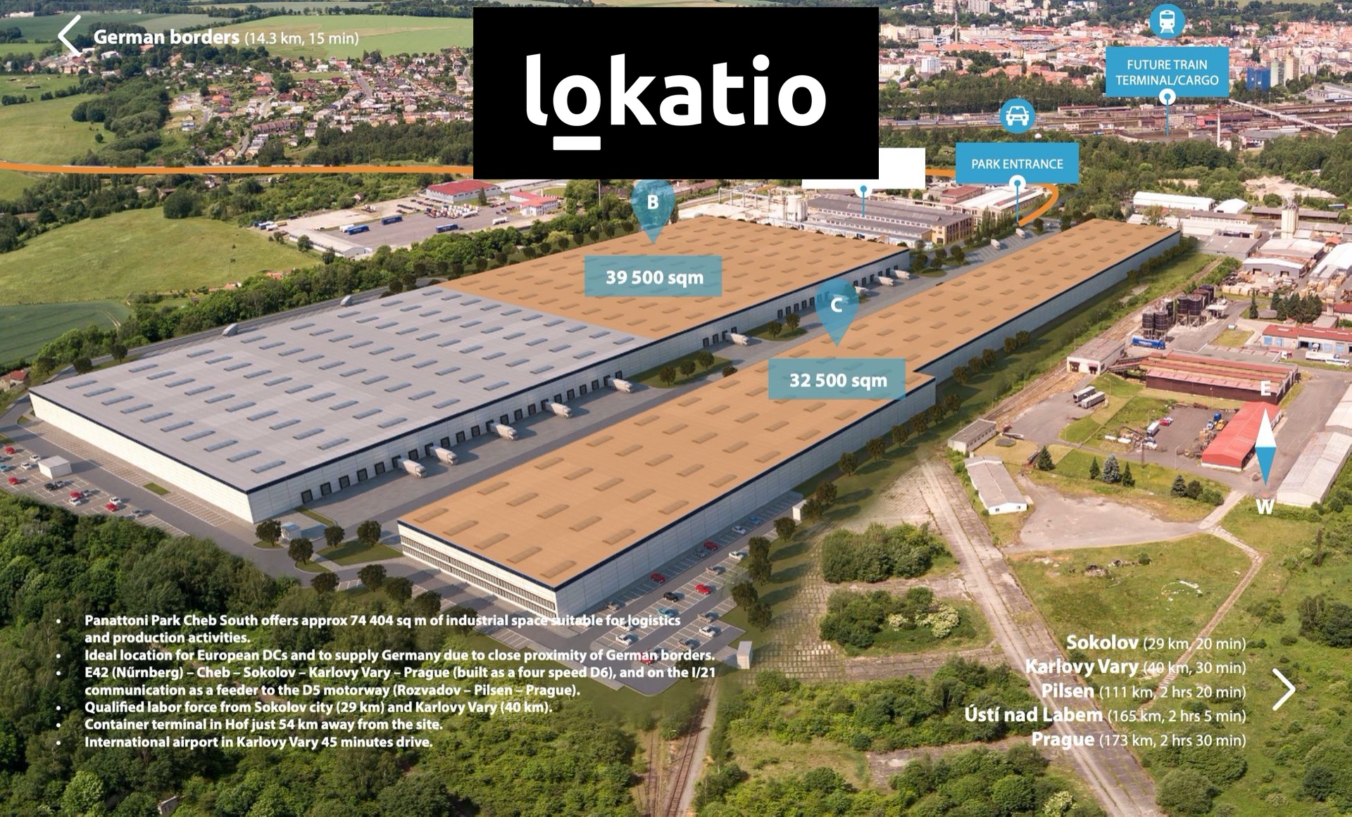 ◉ Cheb, Karlovarský kraj, s výborným přístupem na silniční tah E49 a do Německa