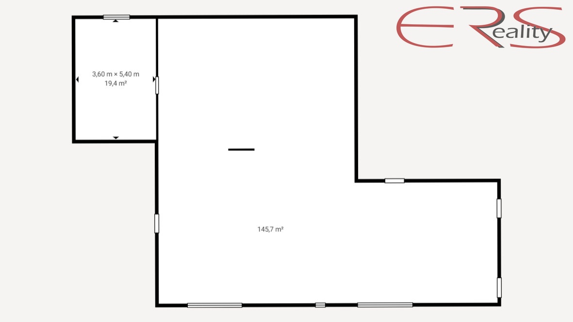 • 146 m² hlavní otevřený prostor s výškou stropu 2,4 m – ideální jako provozovna, showroom, dílna, prodejna nebo kancelářské zázemí