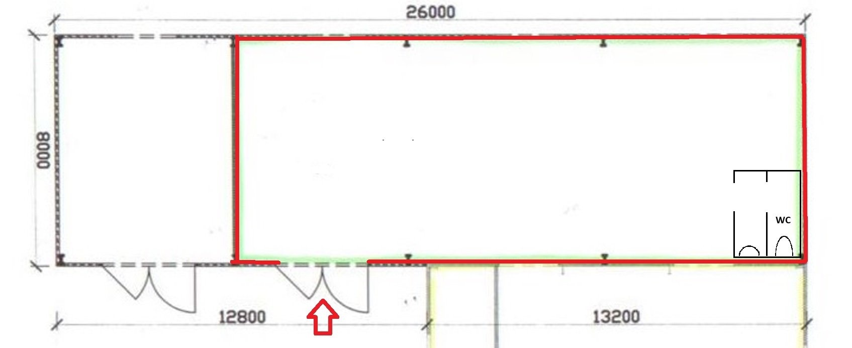 Součástí prostoru je vlastní sociální zázemí – WC a umyvadlo.