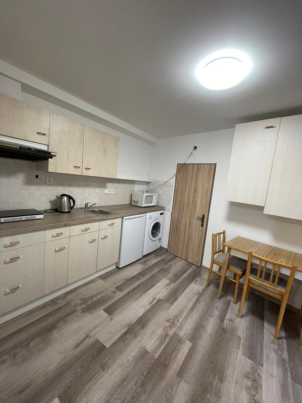 Byt se nabízí vybaven, v základním vybavení je kuchyňská linka, indukční deska, trouba a myčka, postel skříň, stůl, židle.