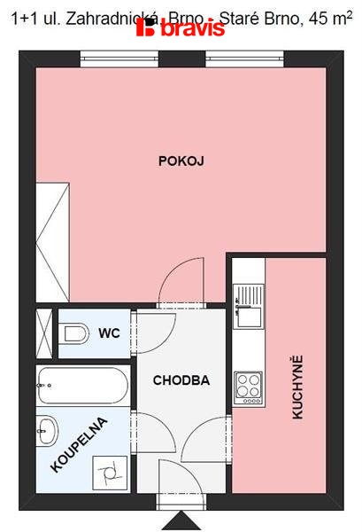 V zastoupení majitele nabízíme k pronájmu zrekonstruovaný byt 1+1 na Starém Brně, ul. Zahradnická.