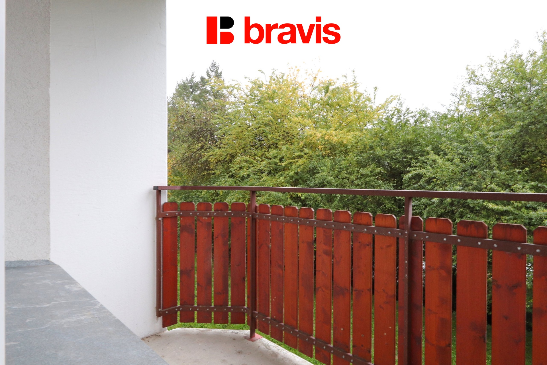 Plocha bytu činí 33 m2 a je vybaven balkonem s výhledem na les.