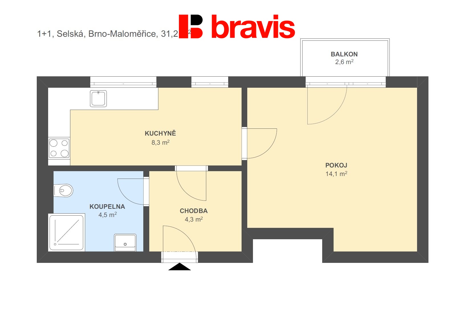 Byt nabízí ložnici, ze které je vstup na balkon, samostatnou kuchyň, koupelnu se sprchovým koutem a toaletou, což zajišťuje dostatek prostoru pro pohodlné bydlení. Sklepní kóje je samozřejmost.