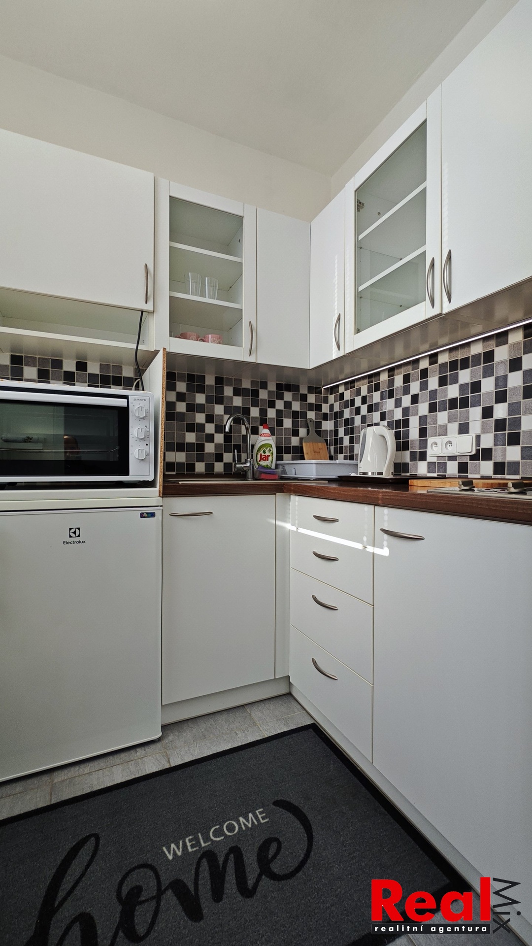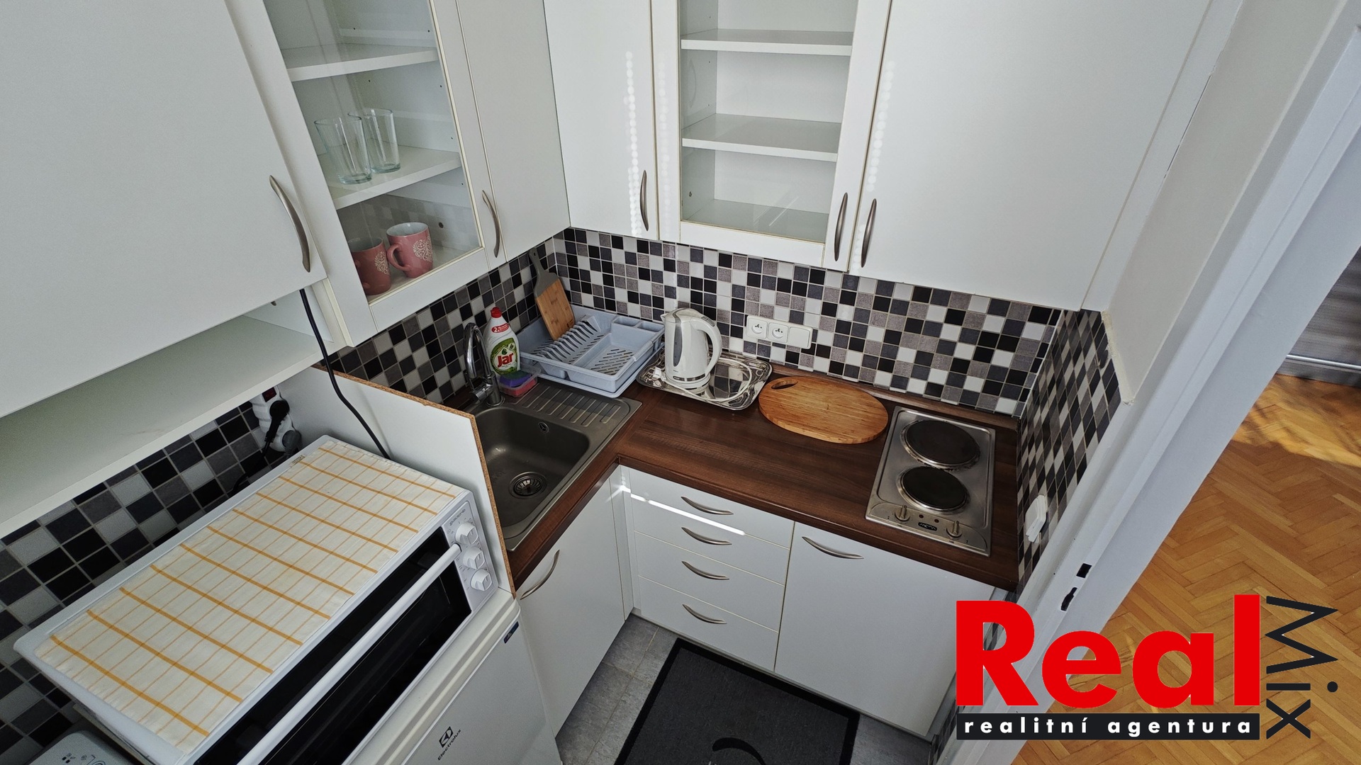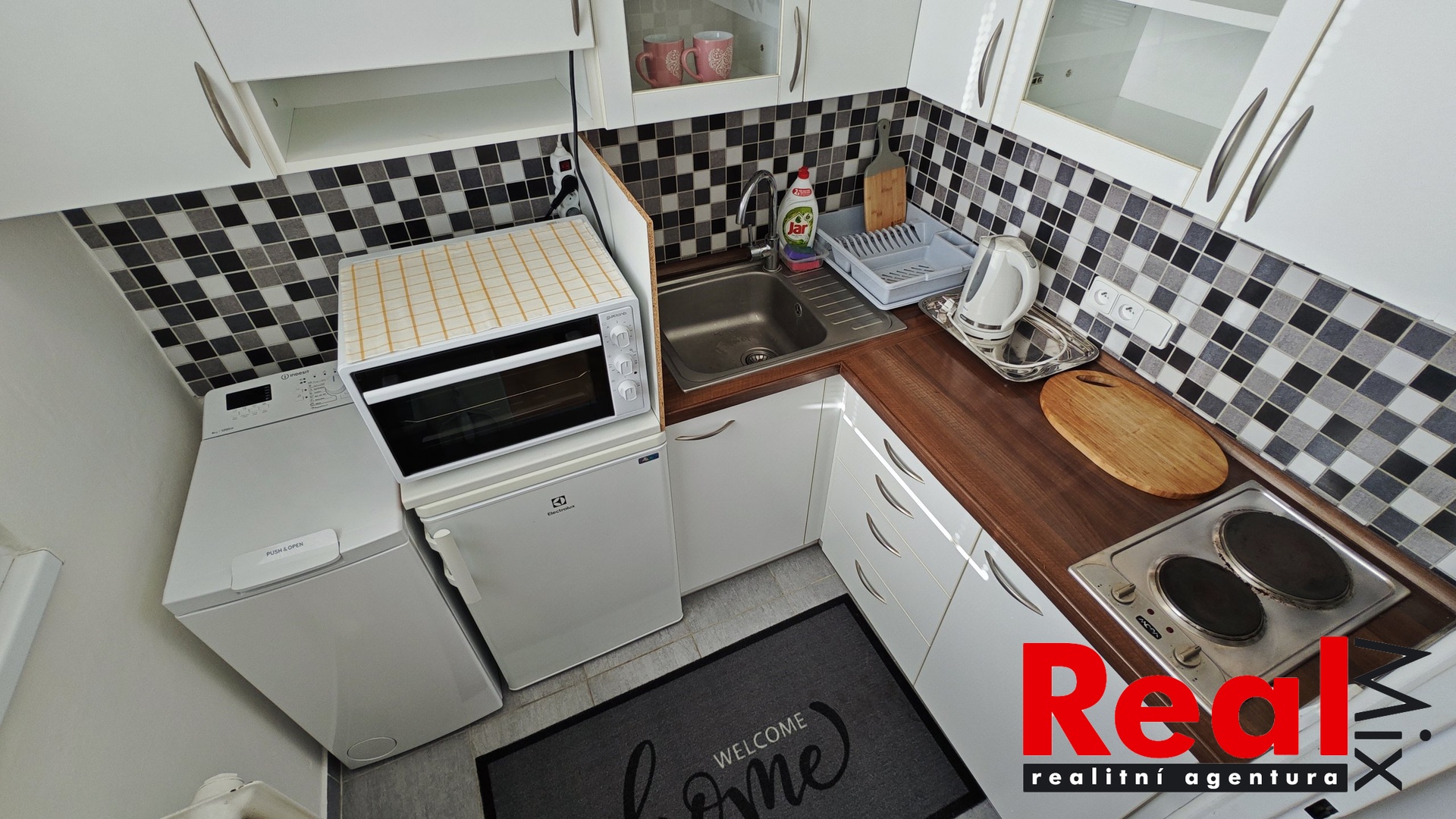 K dispozici kuchyňská linka vč. dvouplotýnkového sporáku, el. trouba, pračka, lednička, šatní skříň v pokoji, botník s věšákem a zrcadlem v předsíni.