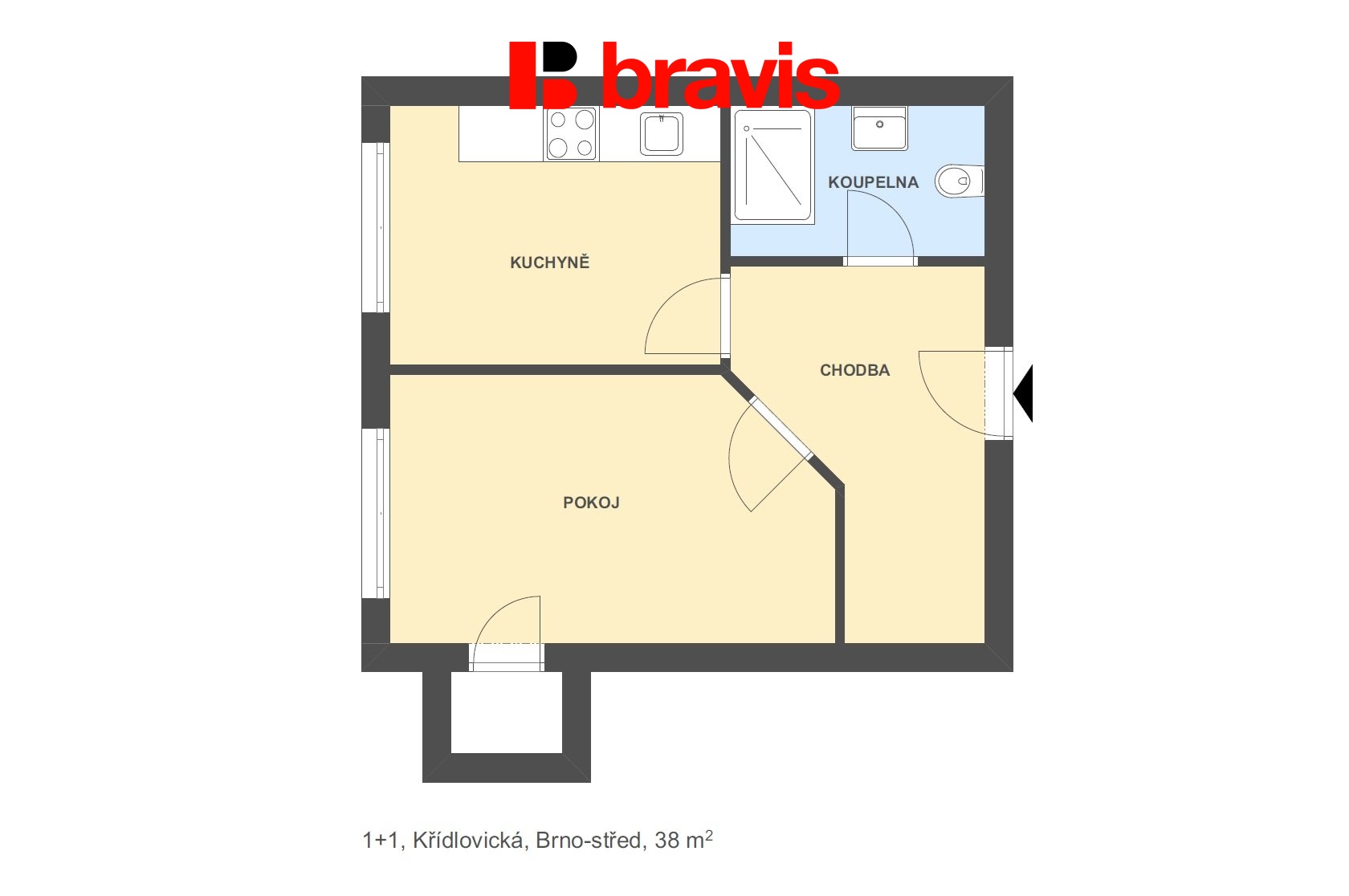 Ve výhradním zastoupení majitele nabízíme k dlouhodobému pronájmu byt 1+1 na ulici Křídlovická, Staré Brno.