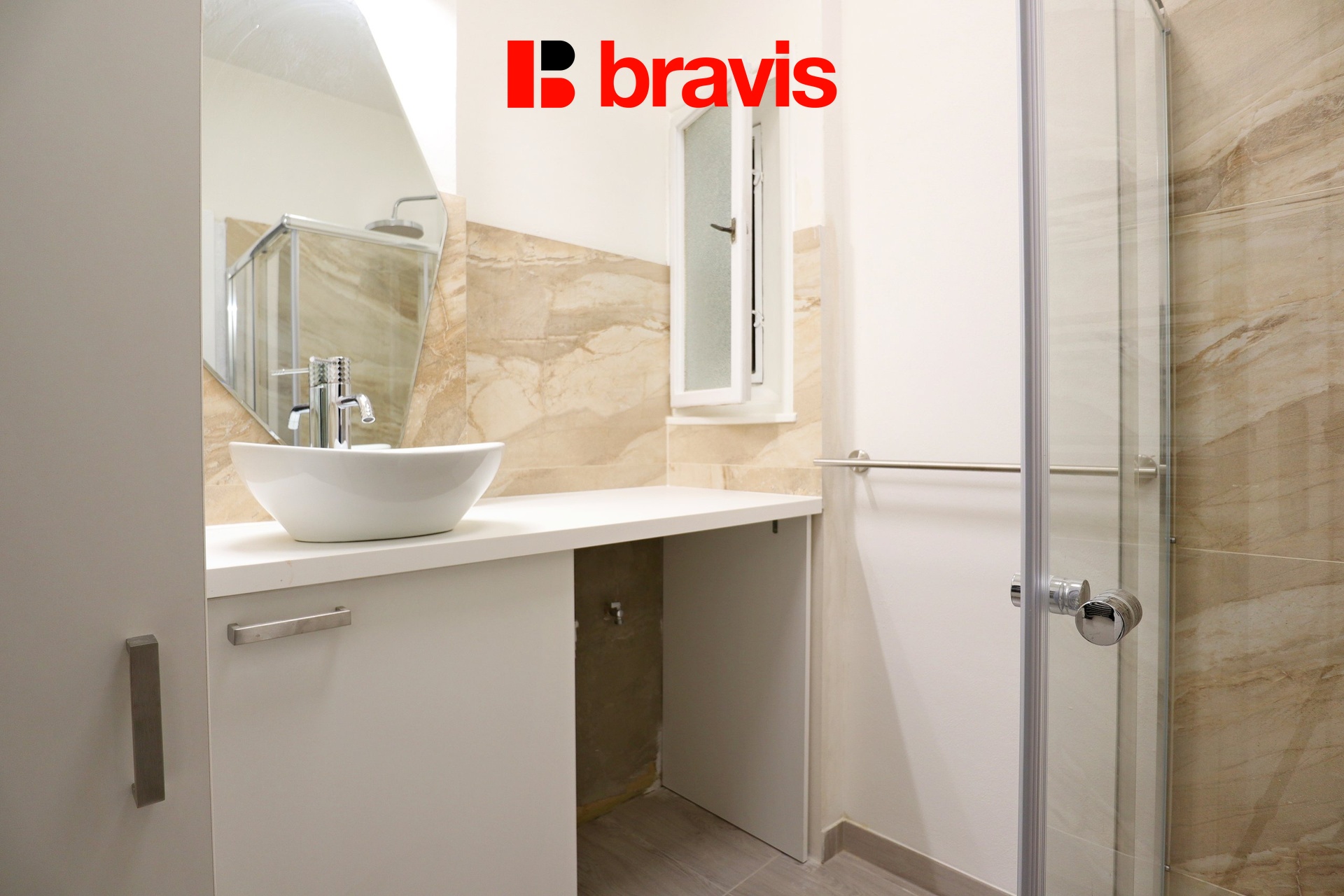 V koupelně se nachází sprchový kout, umyvadlo a přípojka na pračku. Toaleta je samostatně.