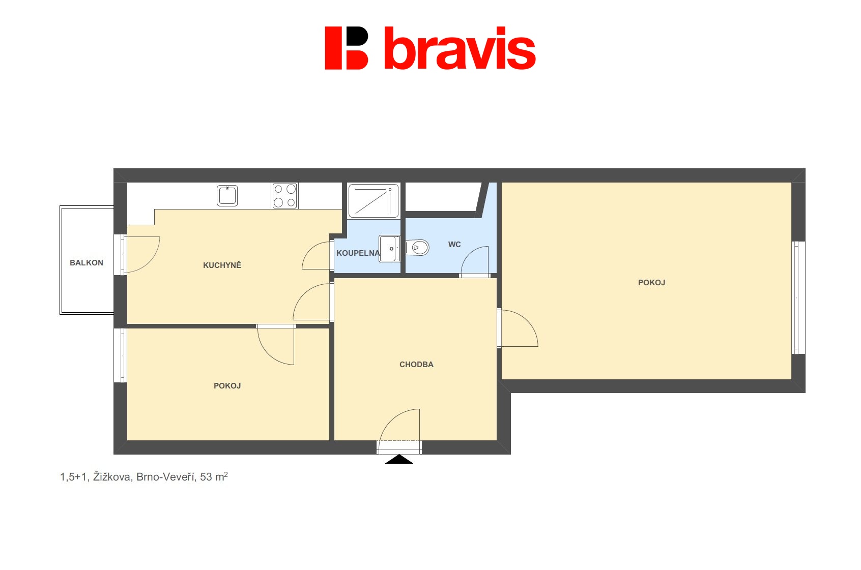 Ve výhradním zastoupení majitele nabízíme k dlouhodobému pronájmu zařízený byt o velikosti 1,5+1 v lokalitě Veveří na ul. Žižkova s balkónem.