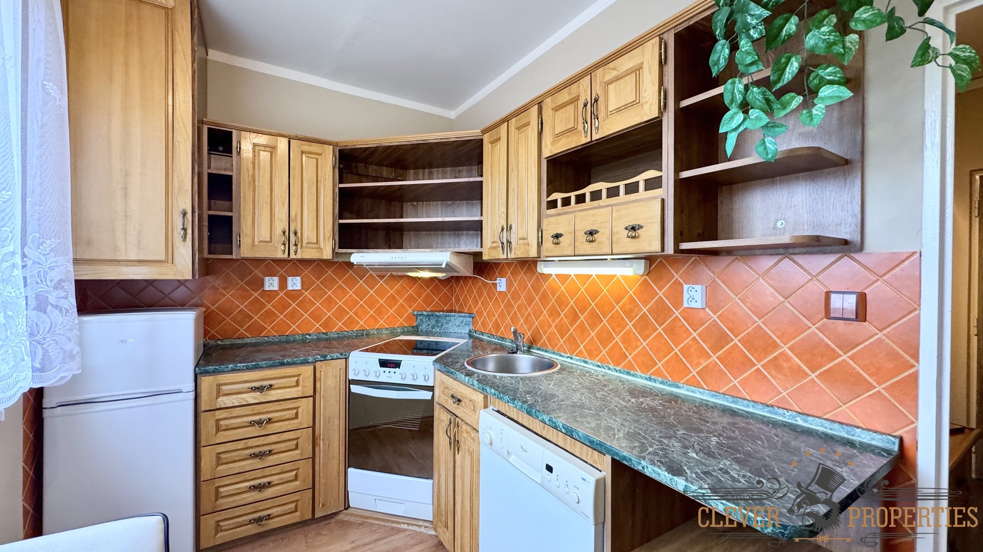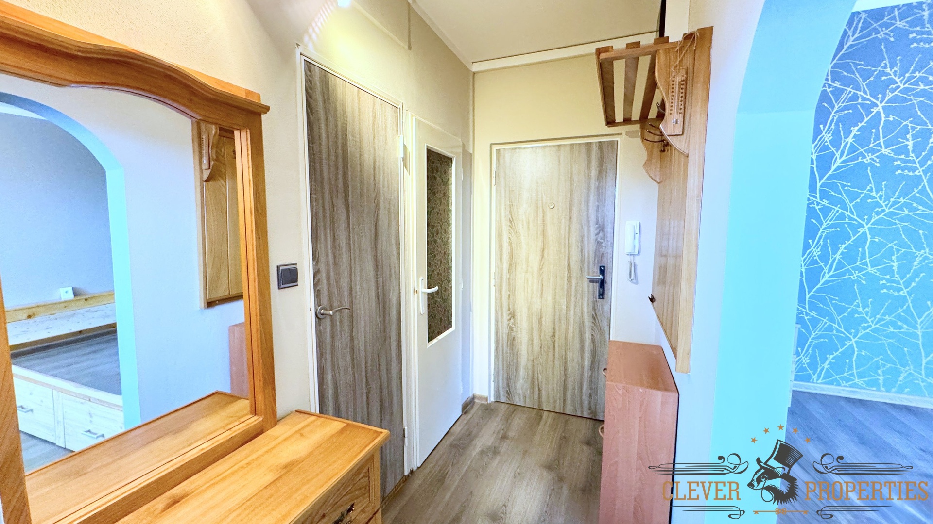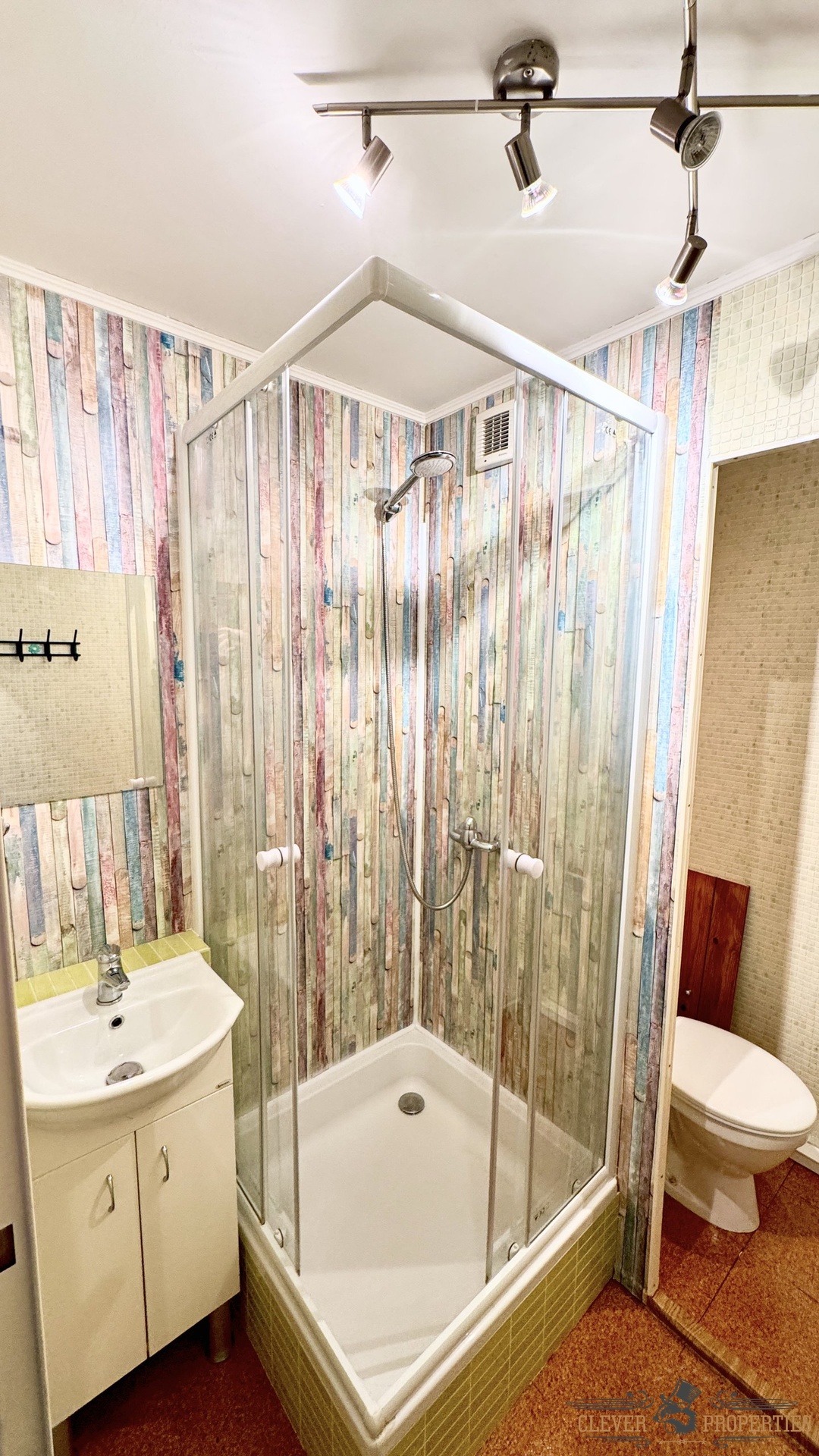 Dále zde najdete koupelnu se sprchovým koutem a toaletou, výhodou je komora s úložnými prostory a pračkou. Další úložné prostory poskytuje prostorný sklep. K bytu patří balkón, který je na mezipatře.