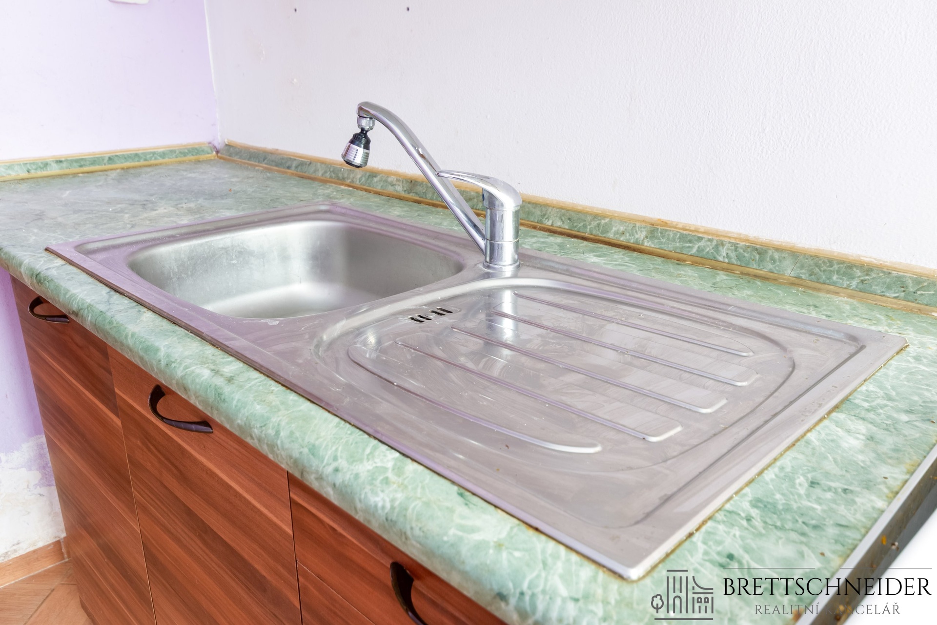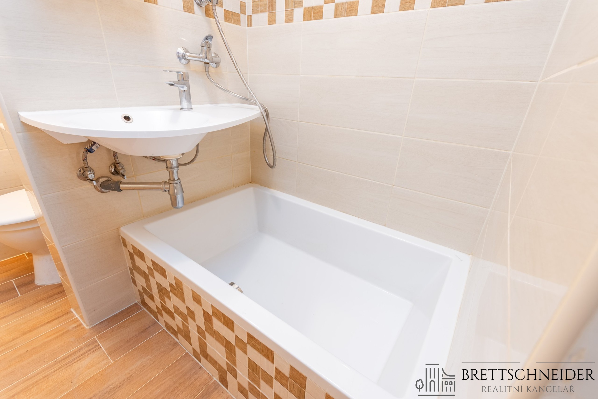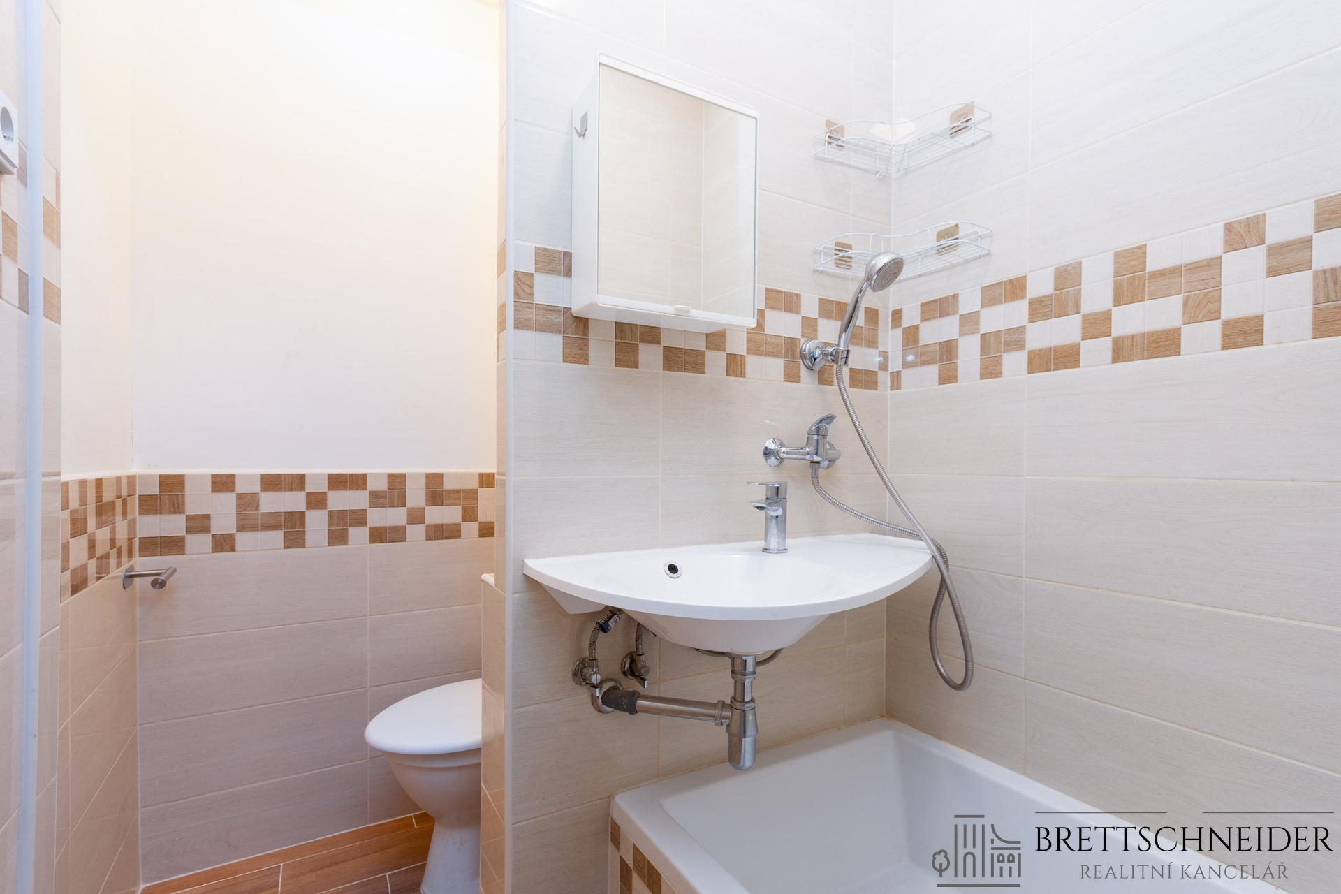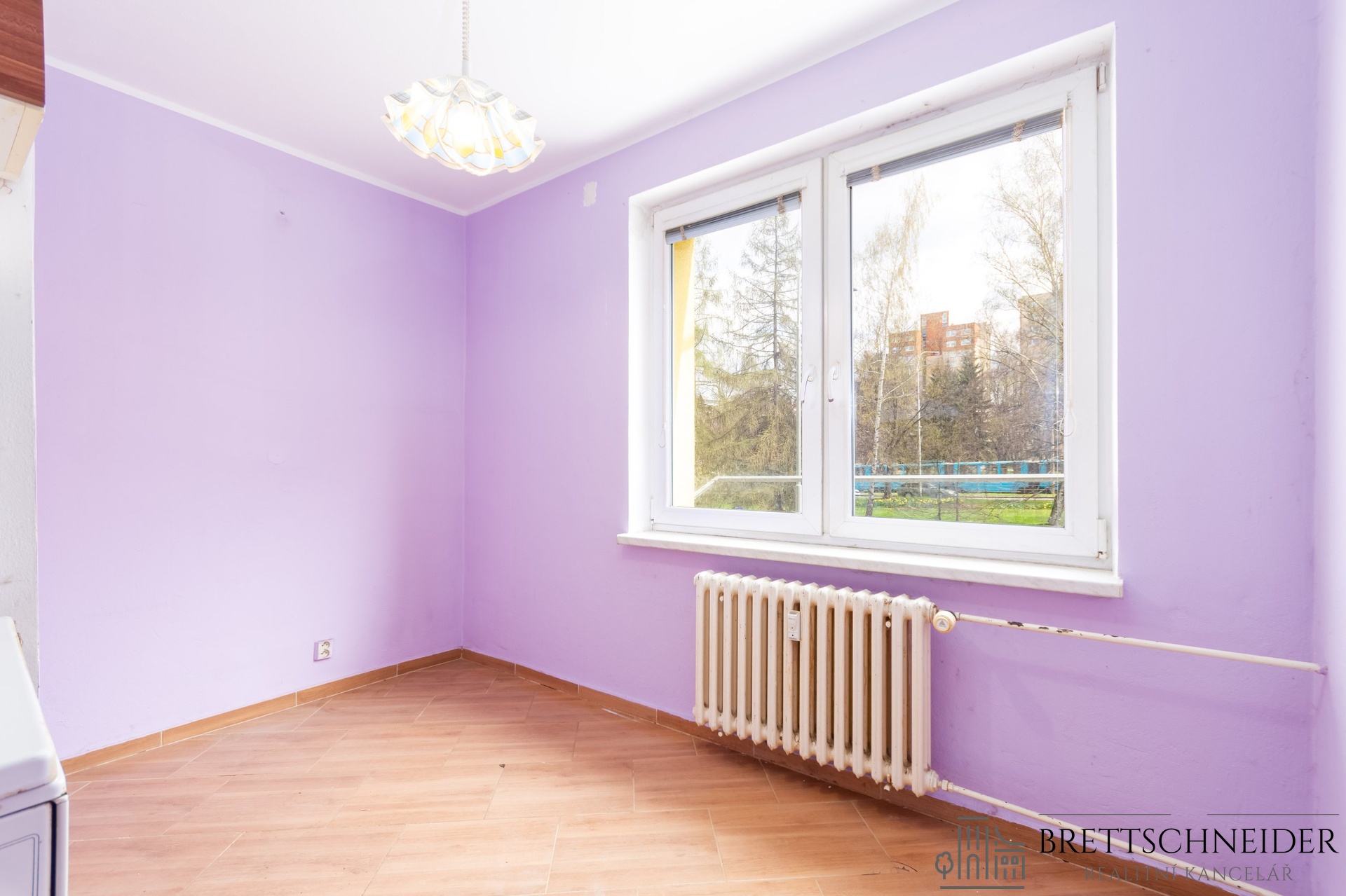 Interiér bytu je částečně vybaven – nechybí prostorná vestavěná skříň, která zajišťuje dostatek úložného prostoru.