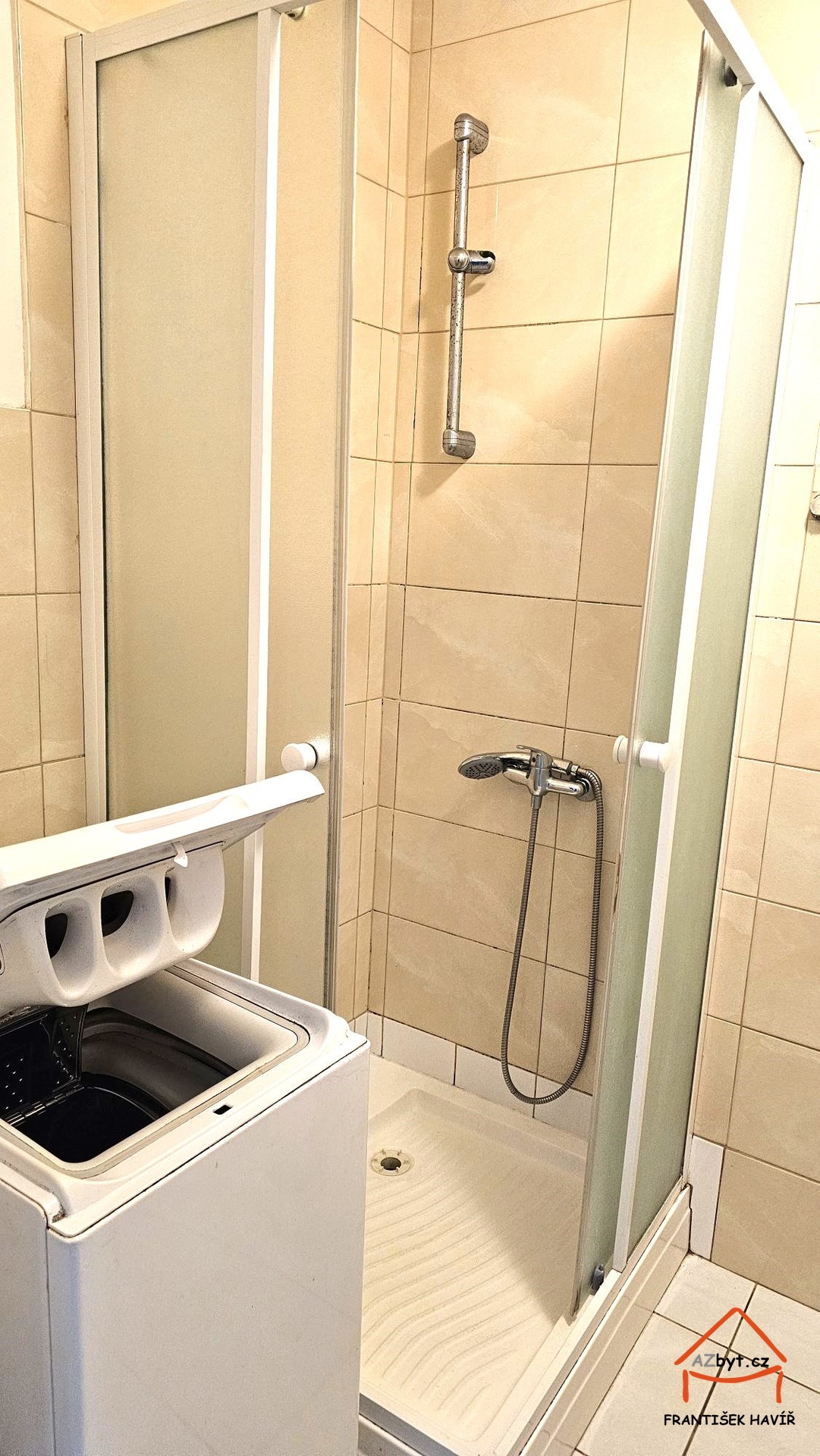 K dispozici je kuchyňská linka, lednice s mrazákem a pračka.