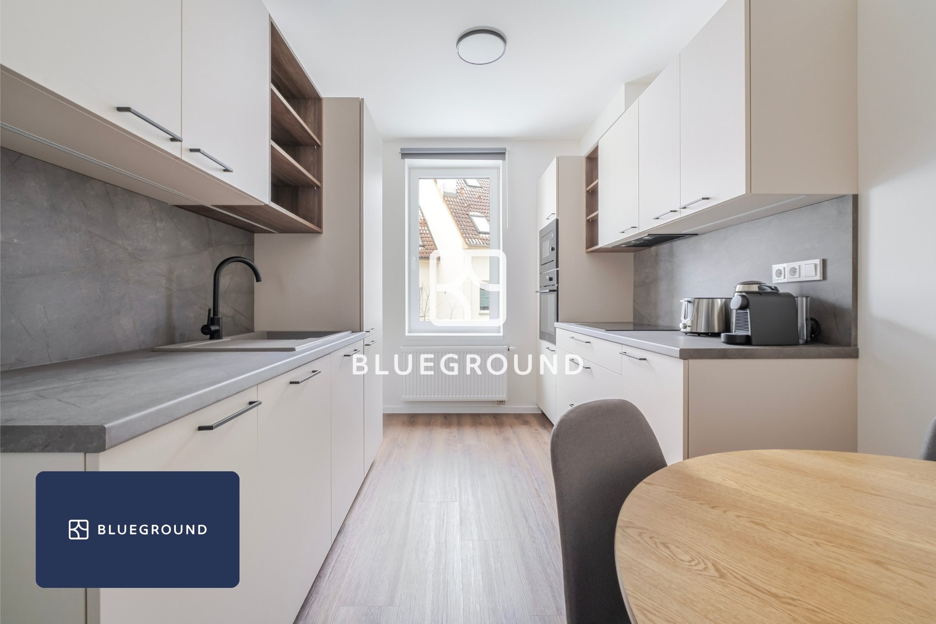 S Blueground se vyhnete stresu spojenému s nákupem nábytku, zařizováním energií i zřizováním internetu. Tento krásně navržený a plně zařízený byt 1+1 s kompletně vybavenou kuchyní se nachází v klidnější části Prahy 3 – Žižkov a je k dispozici již od jednoho měsíce.