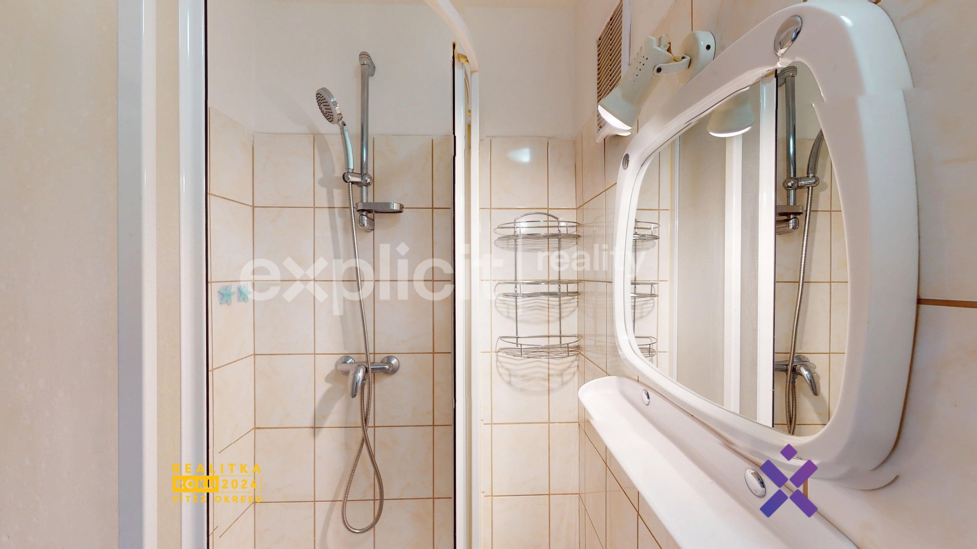 Koupelna se sprchovým koutem, jejíž součástí je také WC oddělené zídkou a poskytuje tak více soukromí.