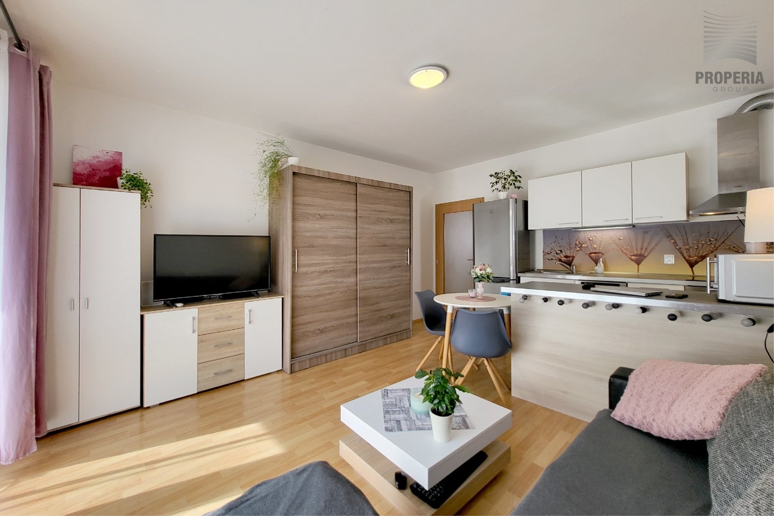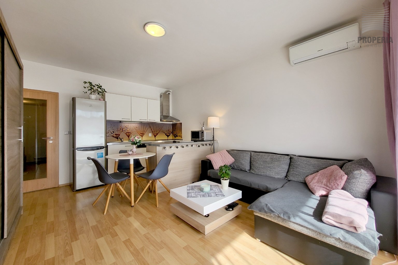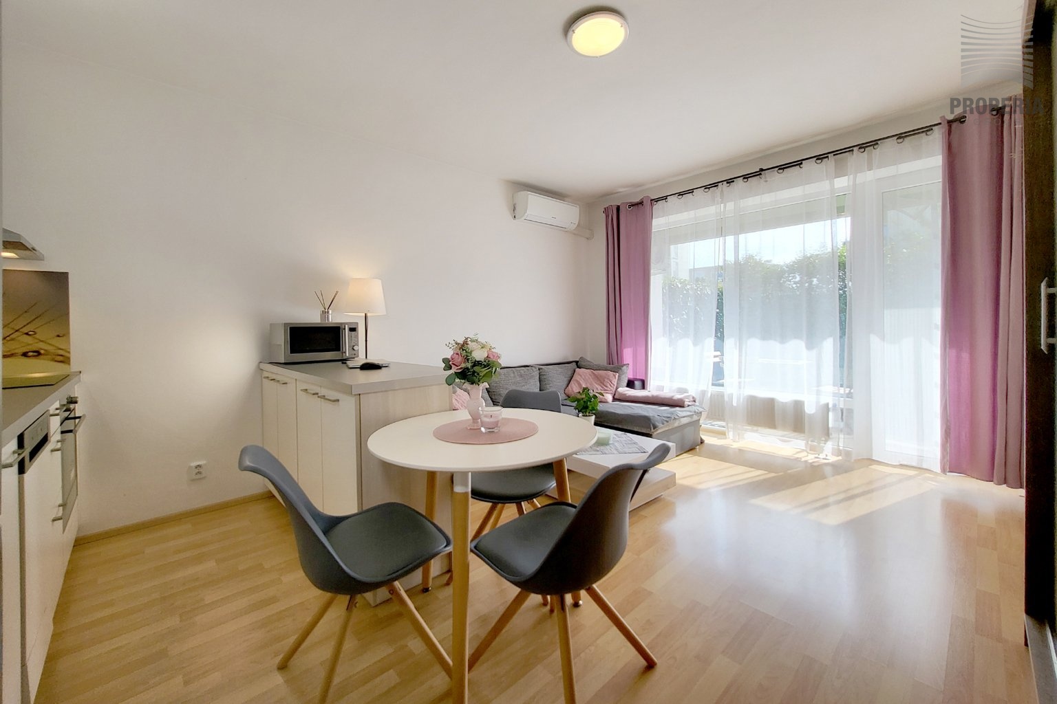 Nabízíme k pronájmu krásný a světlý byt o dispozici 1+kk a podlahové ploše 38 m² v oblíbené lokalitě Kamechy. Byt je velmi útulný, vybavený klimatizací a díky vlastní zahrádce nabízí dokonalé propojení pohodlí bytu s relaxací venku.