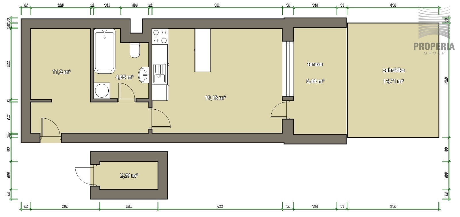 Moderní interiér je řešen prakticky a s důrazem na komfort. Zahrádka poskytuje ideální prostor pro odpočinek, grilování či posezení s přáteli.