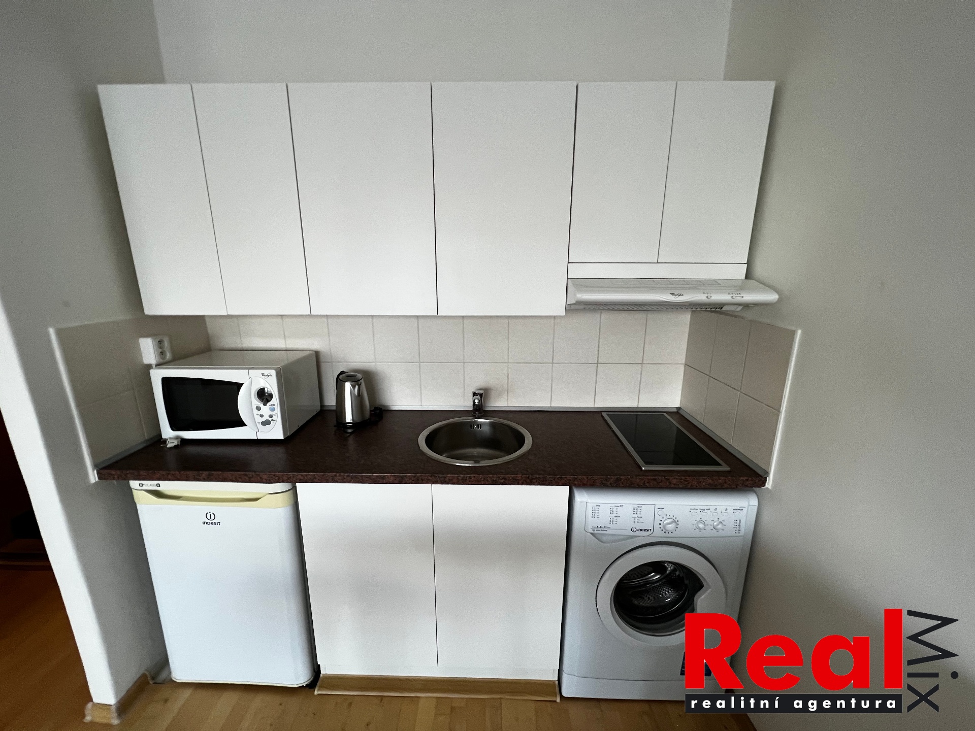 Nabízíme pronájem pěkného a kompletně zařízeného bytu 1+kk s velkou lodžií v Brně - Starém Lískovci na ulici U Pošty. CP bytu je 34m2 vč. lodžie + sklepní kóje. Byt je situován ve 3.NP/8 panelového bytového domu s novým výtahem a je po kompletní rekonstrukci. Dispozice: předsíň s vestavěnou skříní, komora s odvětráním, koupelna se sprchovým koutem a WC, pokoj s kuchyňským koutem, velká lodžie 4,5m2. Byt je jižně orientován s pěkným výhledem. Byt je nabízen kompletně zařízený nábytkem i spotřebiči (pěkná kuchyňská linka, lednice, pračka, skříně, nová rozkládací sedačka - vše viz fotodokumentace) a je nově vymalován. Koupelna po rekonstrukci (zděné jádro, obklady, dlažba, rozvody vody, odpadu a elektřiny). Podlaha v pokoji je dřevěná plovoucí, v předsíni dlažba. Dům po kompletní revitalizaci - výtah, plastová okna, střecha, fasáda a zateplení vč. nové lodžie, stupačky (voda, odpady). V blízkosti je veškerá občanská vybavenost - FN Brno - Bohunice, areál Campus, supermarket Albert, poliklinika Starý Lískovec, pošta, dopravní uzel MHD a další vybavenost. Výborná dostupnost do centra města (13-15 min. na Hlavní nádraží a na Mendlovo náměstí atd.). Majitel požaduje vratnou kauci ve výši 20 tis. Kč + provize RK. Byt je volný ihned.