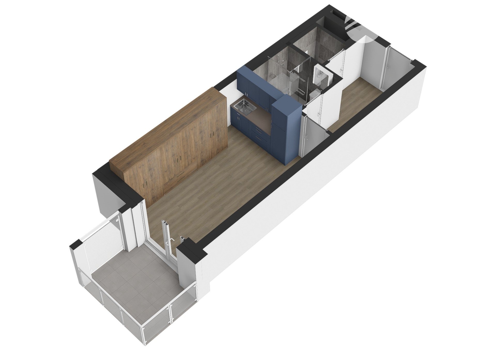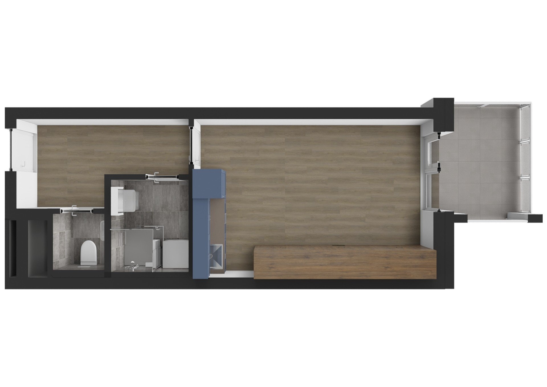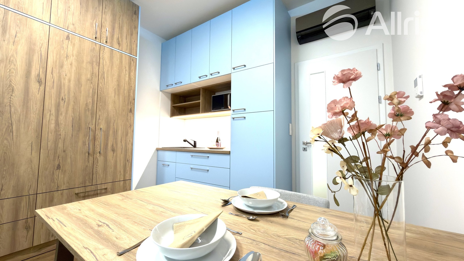 – kuchyňská linka včetně lednice, mikr. trouby, mobilní indukční plotýnky a digestoře