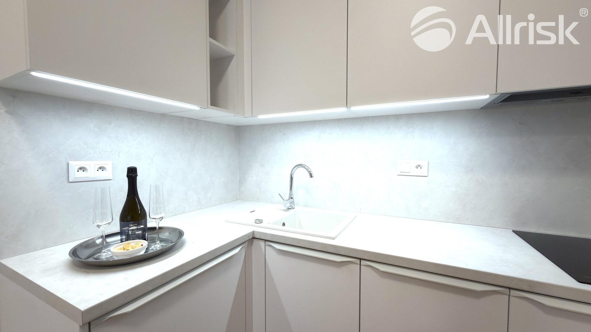 – kuchyňská linka včetně lednice, indukční desky, myčky, digestoře