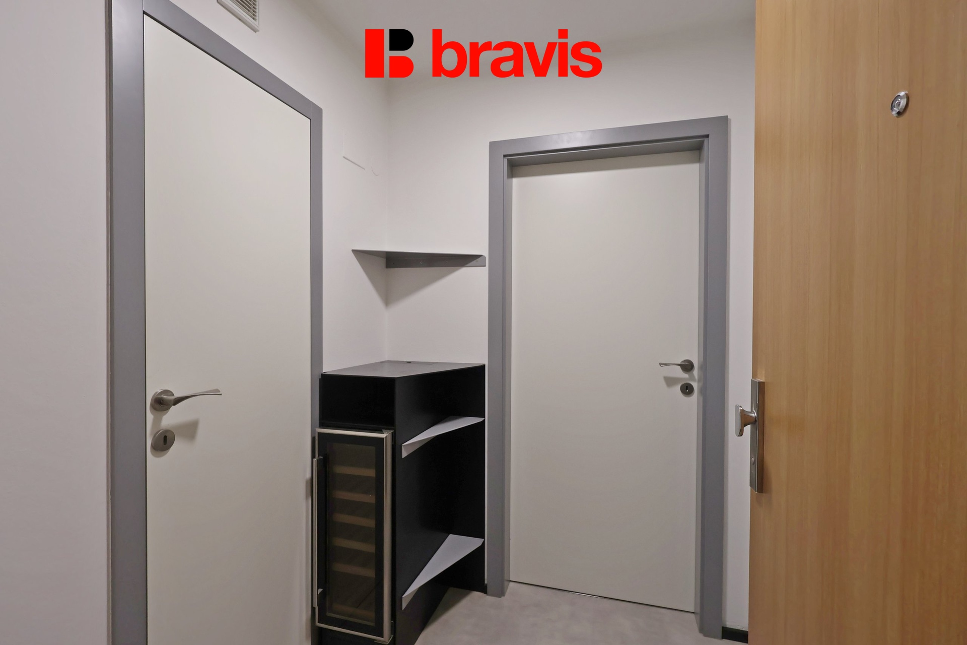 K dispozici je také předsíň s vinotékou a velkou výhodou je samostatná praktická šatna, která nabízí dostatek úložného prostoru pro vaše ošacení.