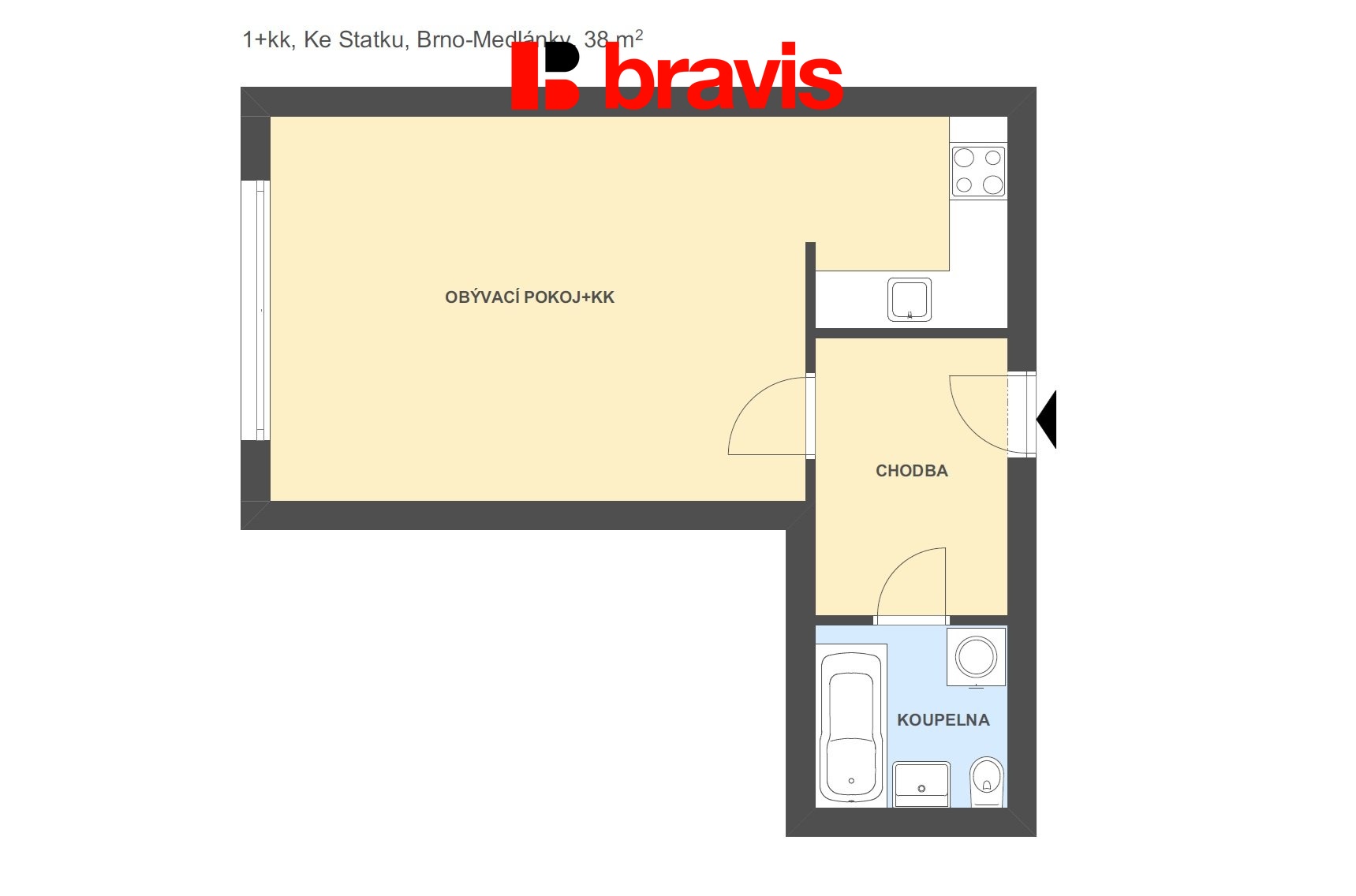 V zastoupení majitele nabízíme k pronájmu byt 1+kk v Brně - Medlánkách, ul. Ke Statku. Byt se nachází ve druhém patře cihlové novostavby s výtahem.