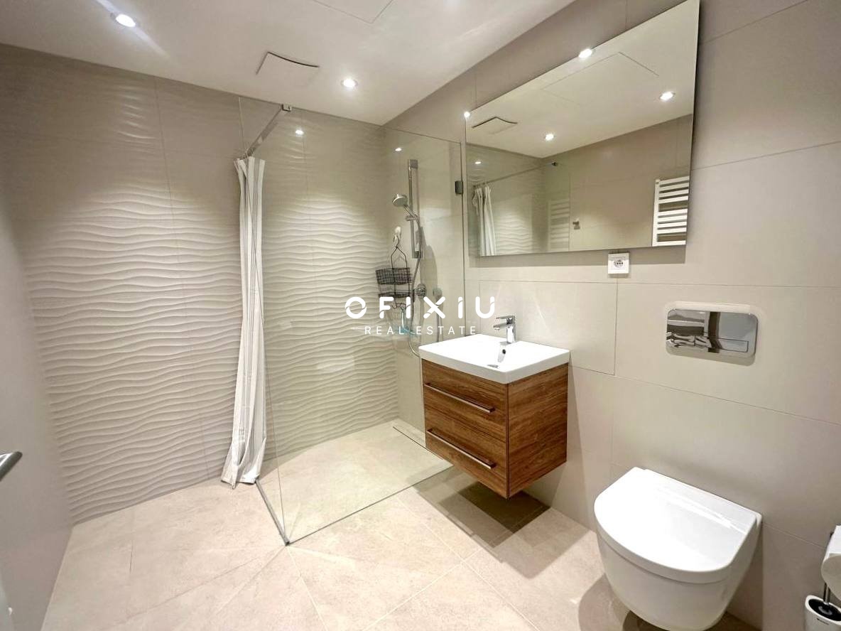 Kuchyňská linka je plně vybavena spotřebiči: lednicí, elektrickou troubou, varnou deskou a myčkou nádobí. V bytě je dále k dispozici pračka a sušička, což zajišťuje maximální komfort každodenního bydlení.