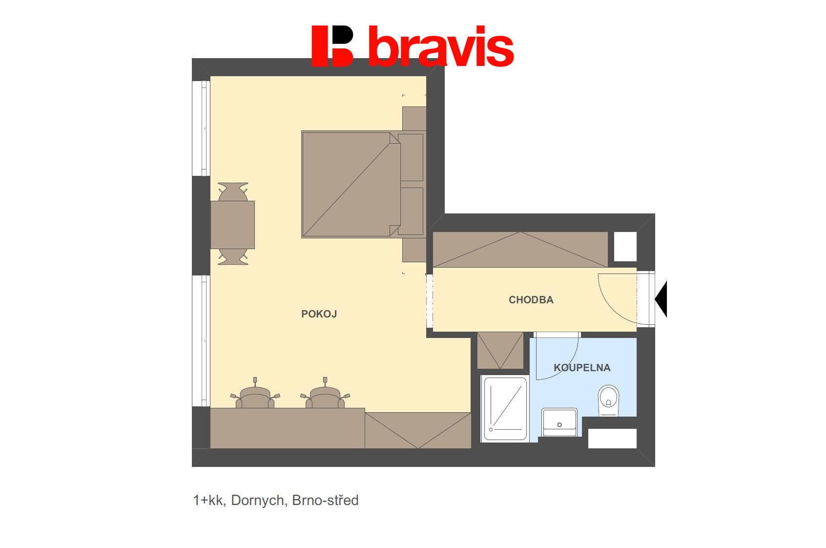 Moderní, bezpečné, metropolitní bydlení na dosah centra Brna. Tím vším a mnohem více je jednotka o velikosti 1+kk v rezidenčním domě na ulici Dornych v Brně.