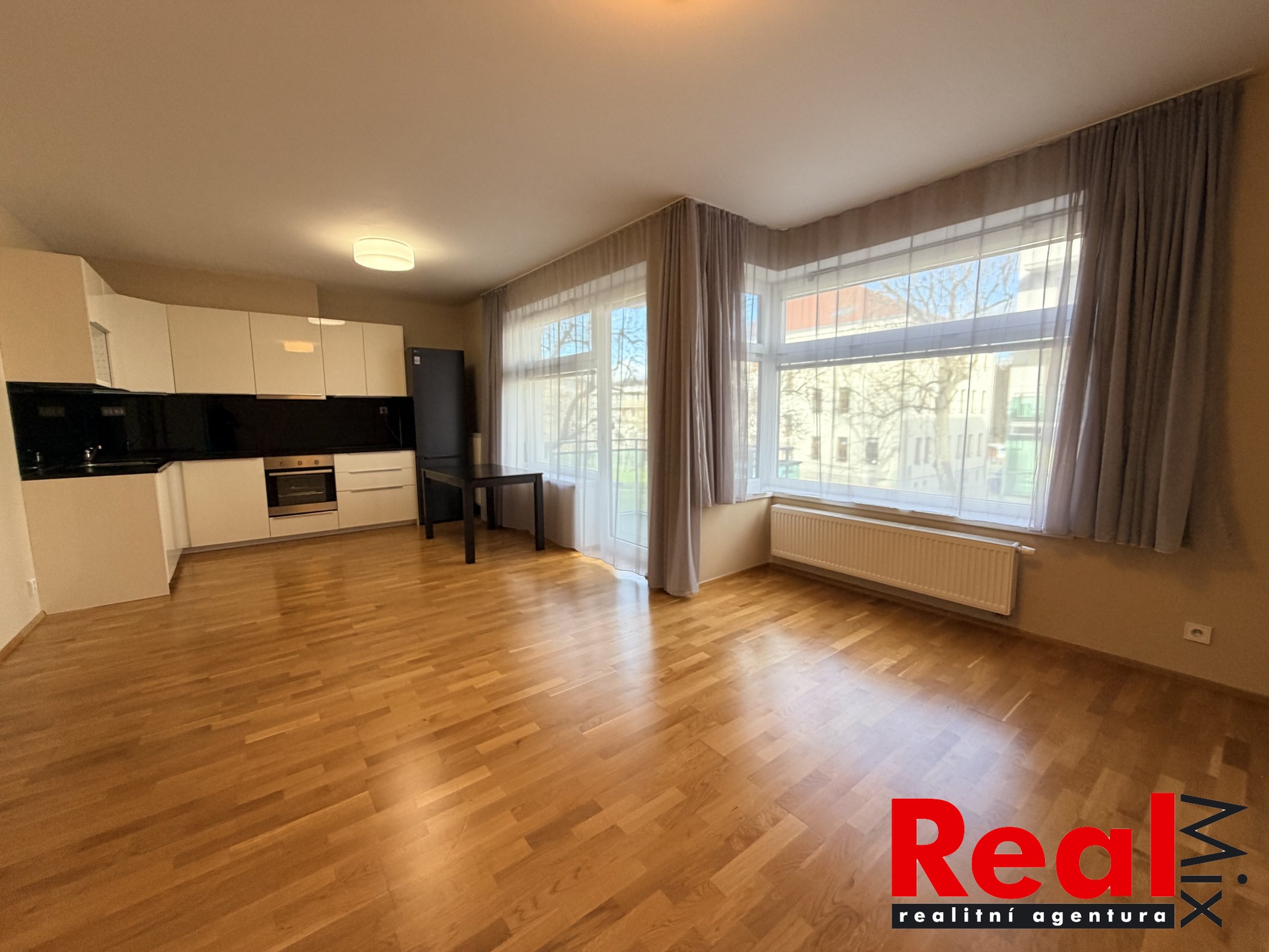 Nabízíme pronájem velmi pěkné novostavby bytu 1+KK s balkonem orientovaným do klidného vnitrobloku, zděným sklepem a garážovým parkovacím stáním na ulici Božetěchova, Brno, Královo - Pole. Bytový dům se nachází v hezkém vnitrobloku pod budovou Nového Semilassa. Bytová jednotka je nabízena částečně vybavena viz přiložená fotodokumentace, a to zejména kuchyňskou linkou včetně nových spotřebičů (zcela nová kvalitní lednice LG, myčka nádobí, elektrická horkovzdušná trouba, odsavač par, varná deska), velké šatní skříně, vestavných skříní v předsíni. Pokoj s kuchyňským koutem je dostatečně prostorný pro rozmístění veškerého nábytku (sedačka, postel, stůl atd.). Byt je dále vybaven pračkou a je možné dovybavit i sušičkou prádla, po domluvě např. ještě jídelním stolem se židlemi. V koupelně je nová umyvadlová skříňka včetně umyvadla, nová zrcadlová skříňka, v celém bytě nové kvalitní baterie. Bytová jednotka je situována ve 2. nadzemním podlaží cihlové novostavby s výtahem, vyhrazené parkovací stání a prostorný zděný sklep s regály v podzemní garáži přímo pod domem. Dům se nachází ve vyhledávané lokalitě, v klidnějším vnitrobloku mezi dalšími novými bytovými domy, v blízkosti veškeré služby a vybavenost, zastávky MHD, restaurace atd. Výborná dostupnost do centra města. Majitel požaduje vratnou kauci ve výši min. 30 tis. Kč + provize RK. Více info + prohlídky v RK.