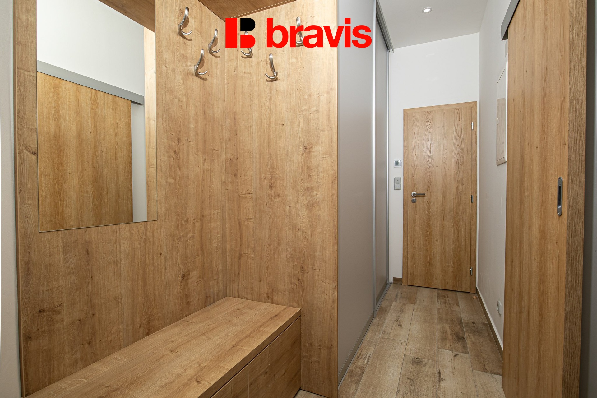 V předsíni se nachází vestavná skříň společně s pračkou a sušičkou.