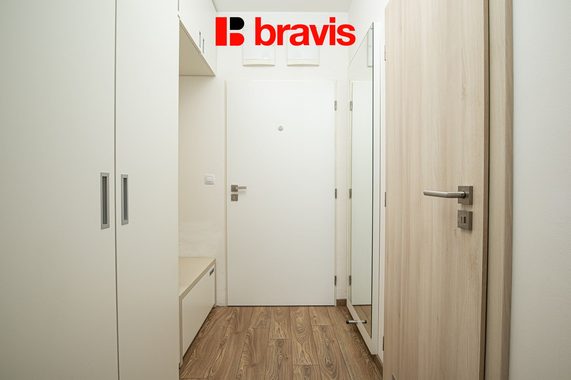 Předsíň je vybavena vestavěnou skříní a věšákovou stěnou se zrcadlem.