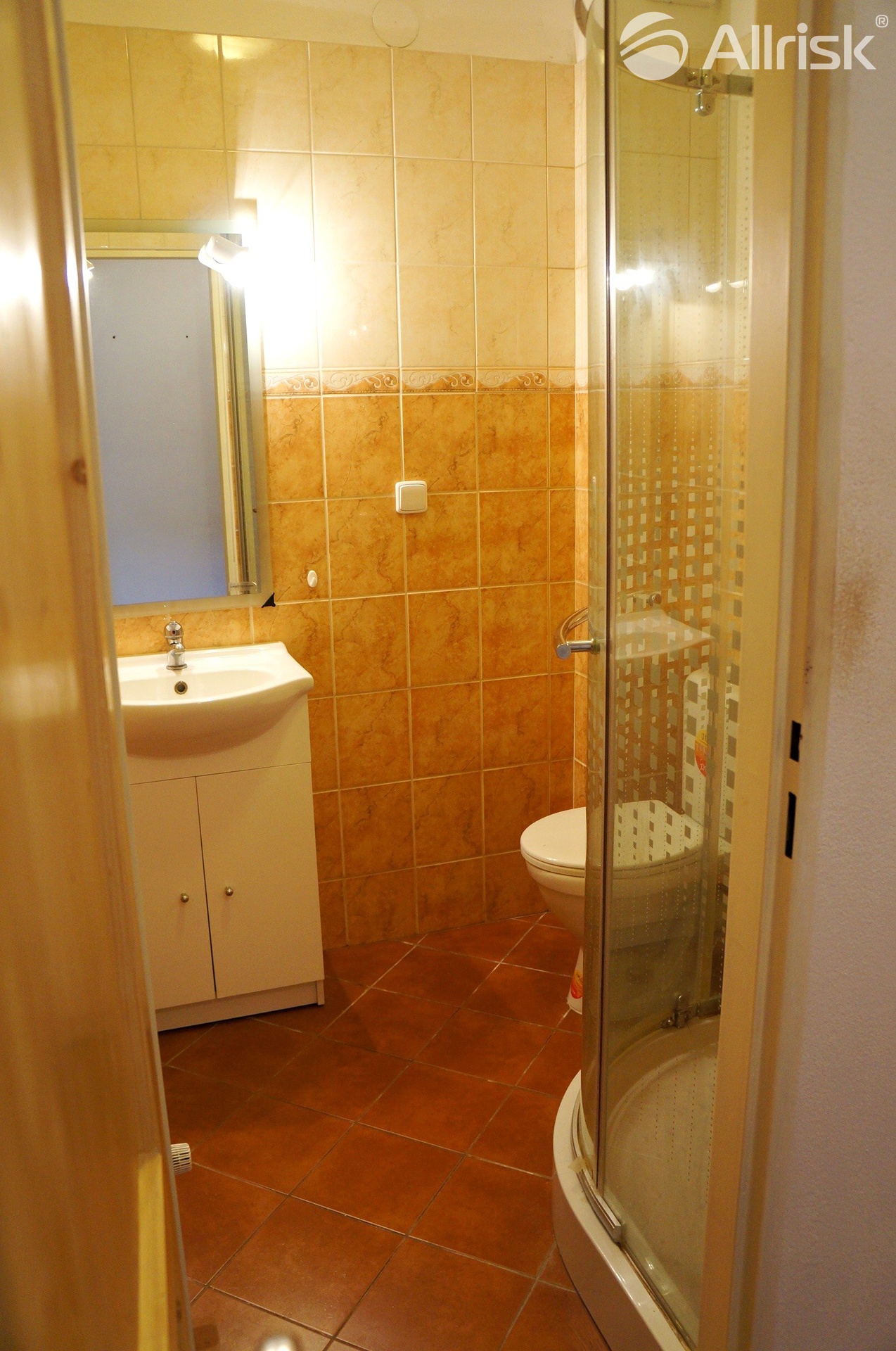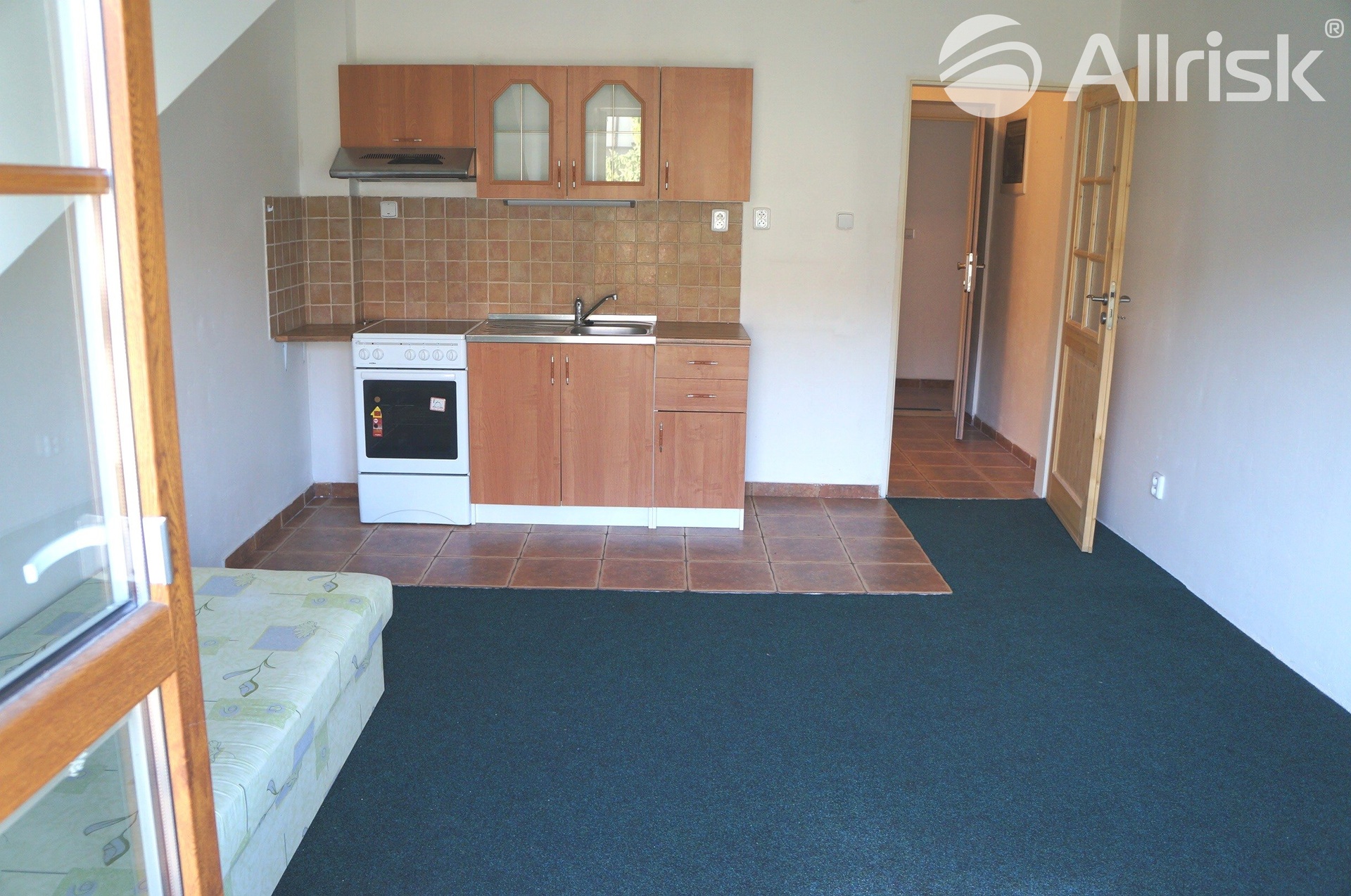 Kuchyňská linka + sporák, koupelna se sprchovým koutem